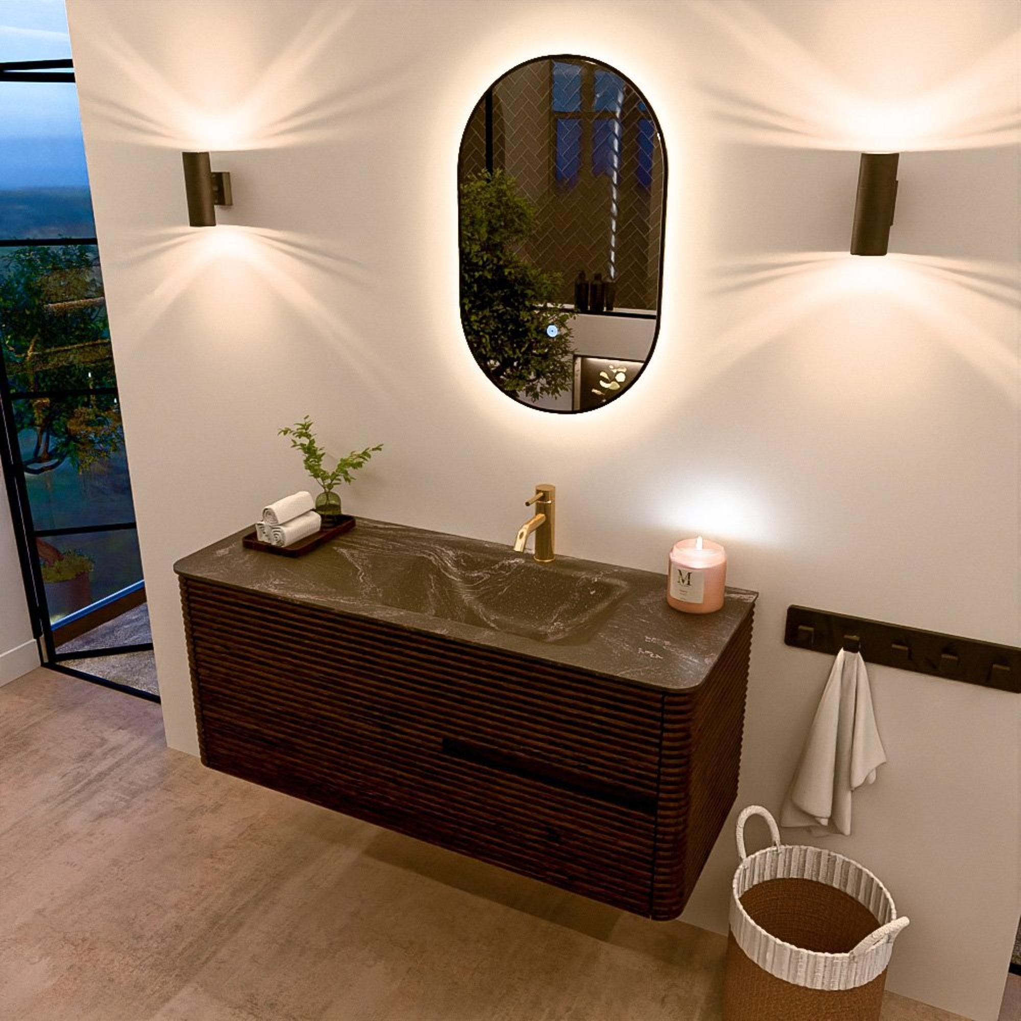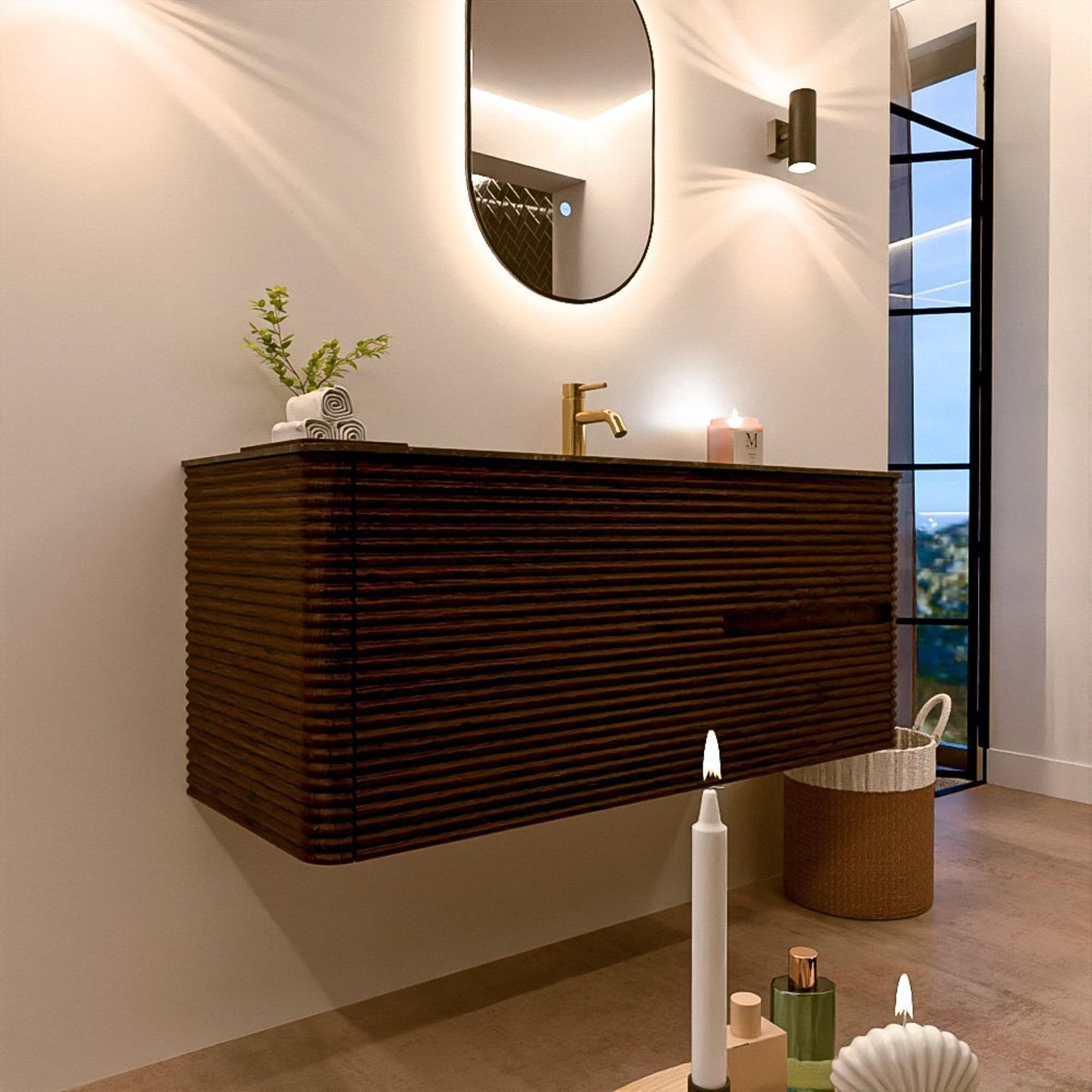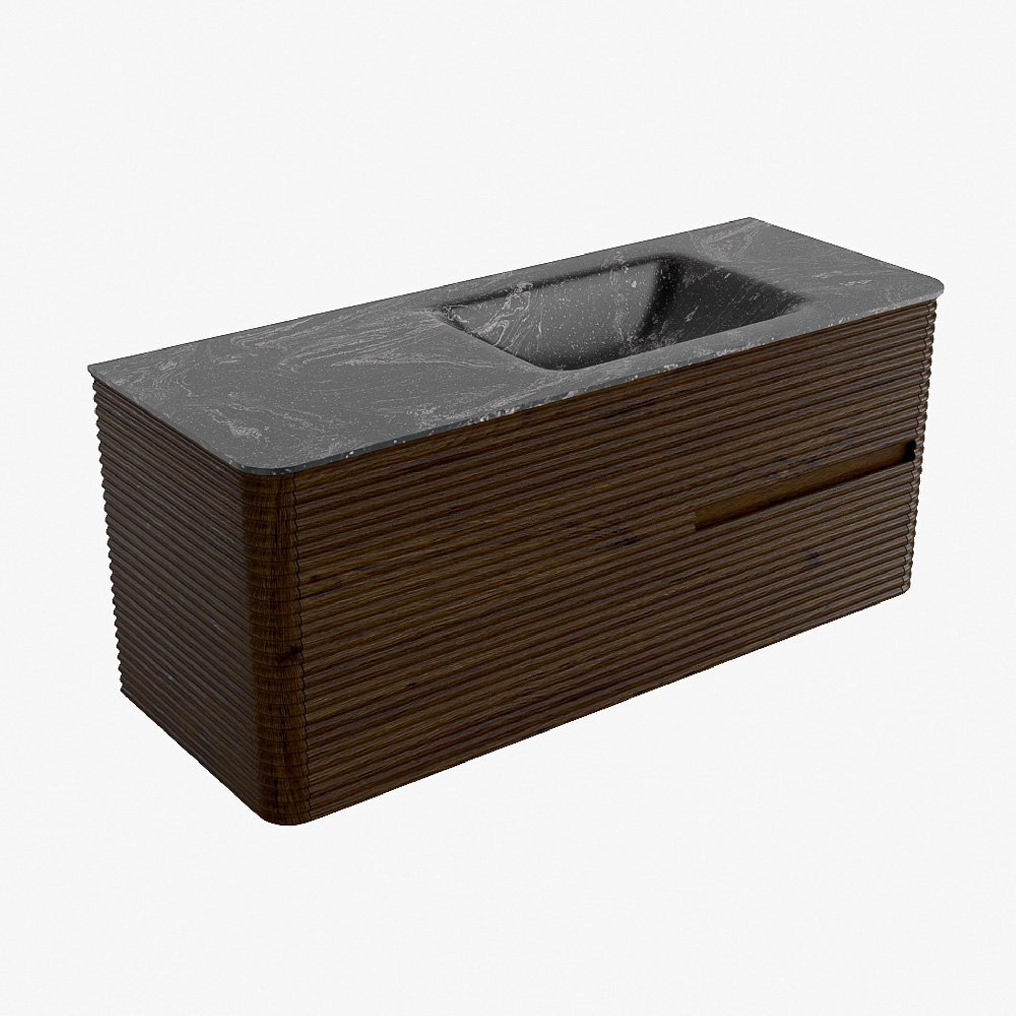 Mondiaz CIRO-DLUX Badkamermeubelset - 120x45x50cm - Solid surface wastafel Lava - 1 wasbak Rechts - 1 kraangat - 2 lades - Walnut