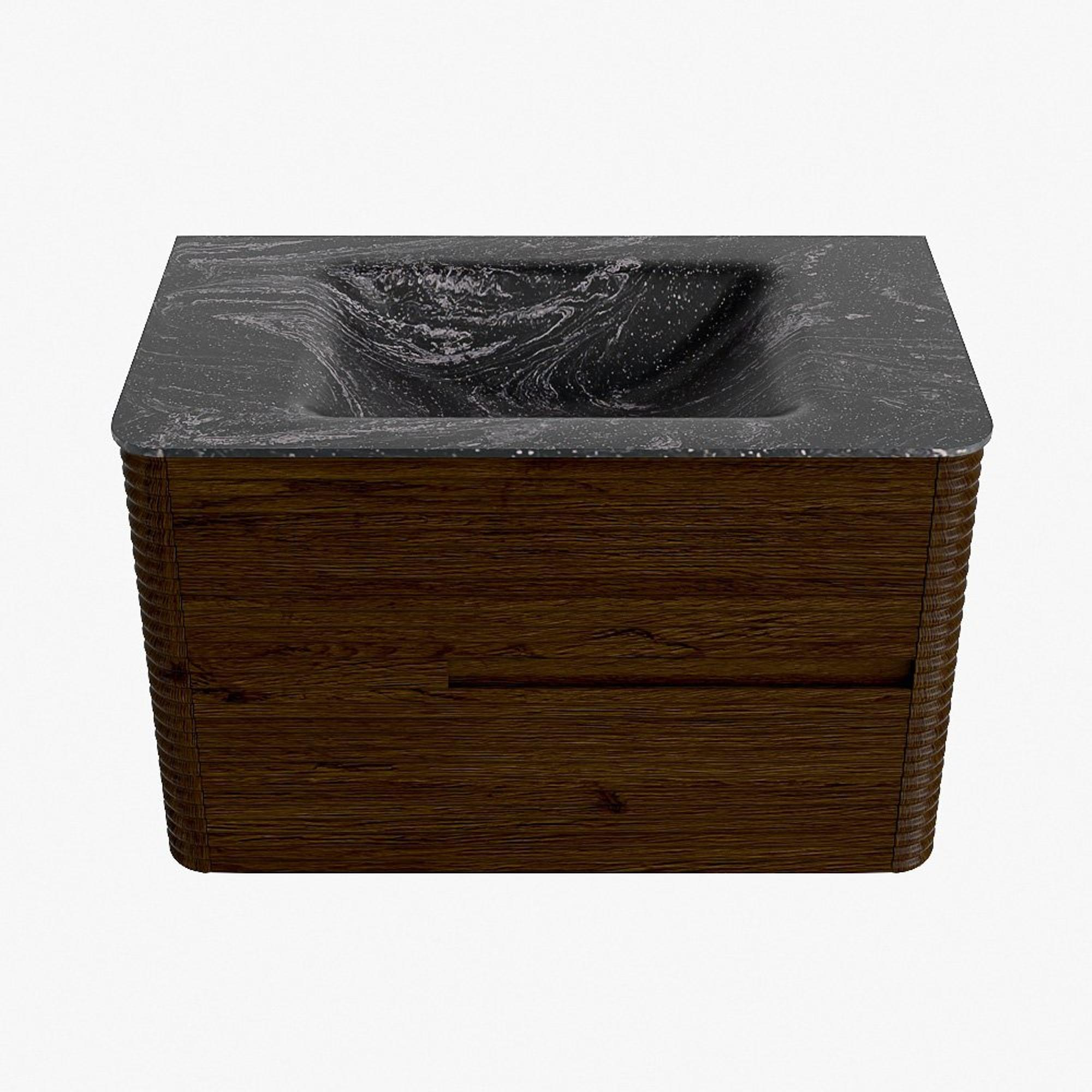 Mondiaz CIRO-DLUX Badkamermeubelset - 80x45x50cm - Solid surface wastafel Lava - 1 wasbak Midden - zonder kraangaten - 2 lades - Walnut