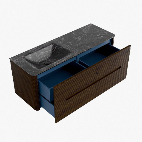 Mondiaz CIRO-DLUX Badkamermeubelset - 130x45x50cm - Solid surface wastafel Lava - 1 wasbak Links - zonder kraangaten - 4 lades - Walnut