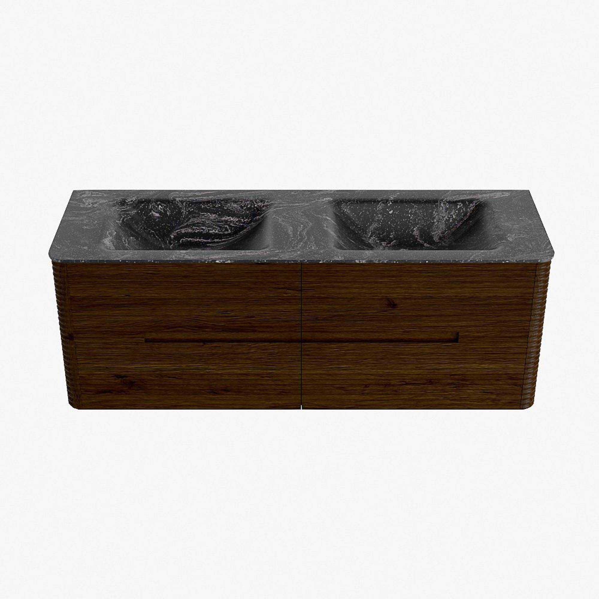 Mondiaz CIRO-DLUX Badkamermeubelset - 140x45x50cm - Solid surface wastafel Lava - 2 wasbak Dubbel - zonder kraangaten - 4 lades - Walnut