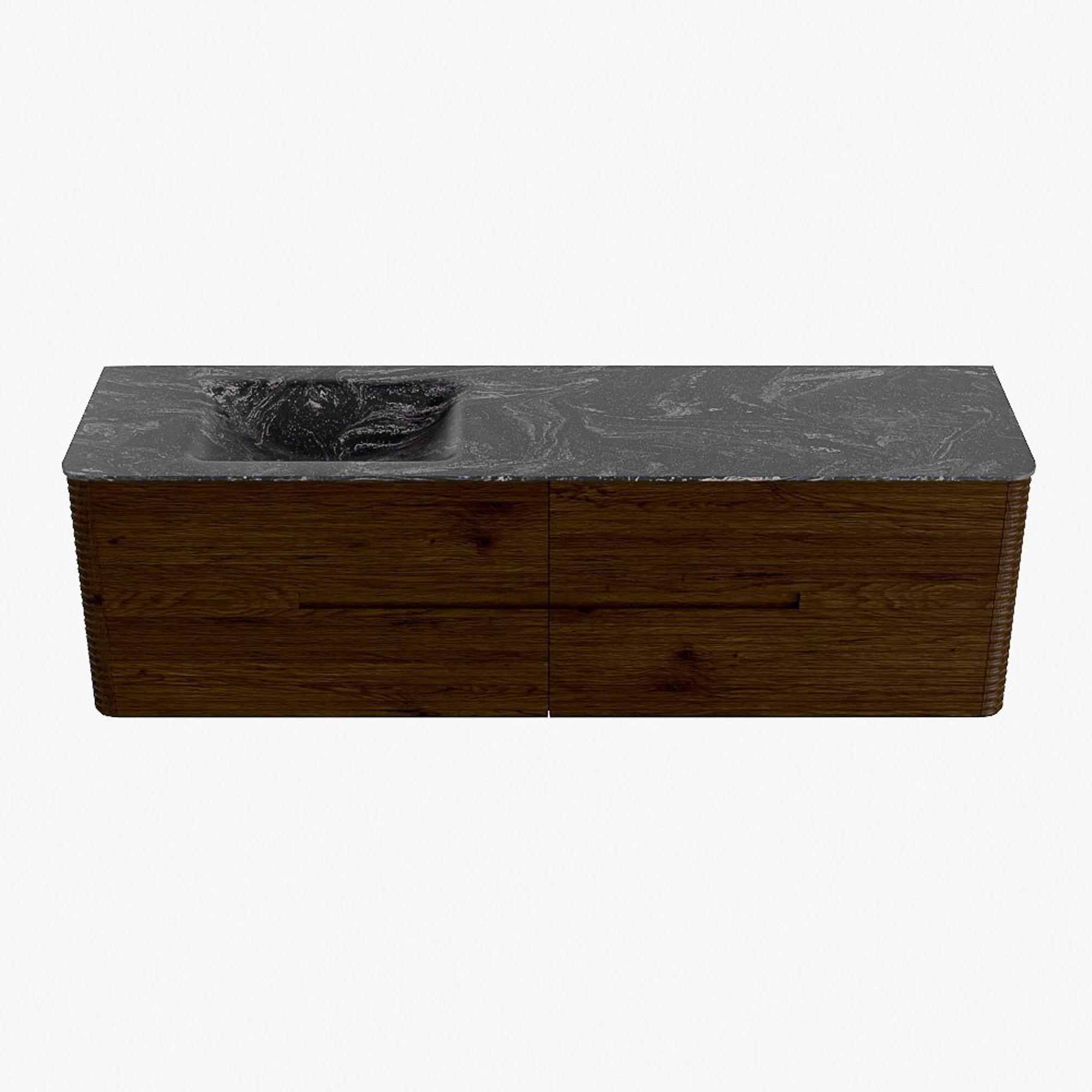 Mondiaz CIRO-DLUX Badkamermeubelset - 170x45x50cm - Solid surface wastafel Lava - 1 wasbak Links - zonder kraangaten - 4 lades - Walnut
