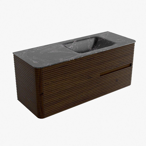Mondiaz CIRO-DLUX Badkamermeubelset - 120x45x50cm - Solid surface wastafel Lava - 1 wasbak Rechts - zonder kraangaten - 2 lades - Walnut