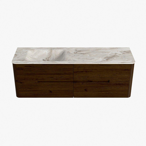 Mondiaz CIRO-DLUX Badkamermeubelset - 150x45x50cm - Solid surface wastafel Frappe - 1 wasbak Links - zonder kraangaten - 4 lades - Walnut