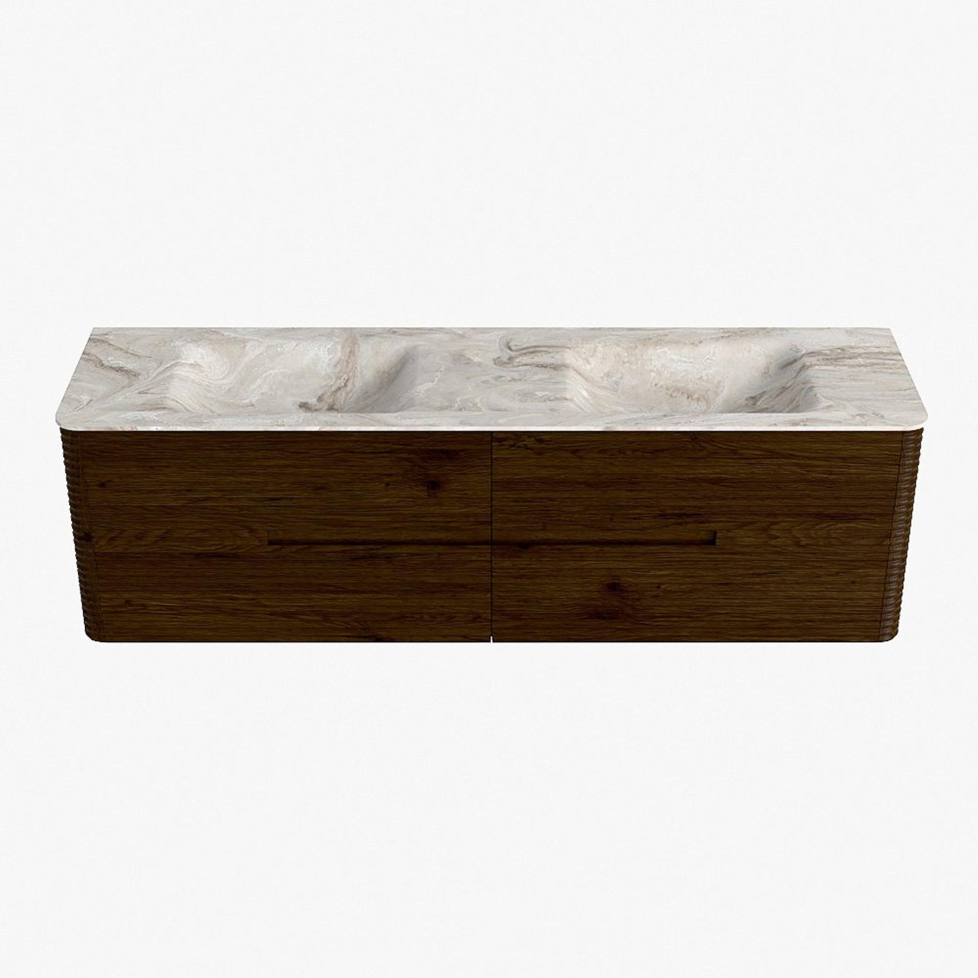 Mondiaz CIRO-DLUX Badkamermeubelset - 170x45x50cm - Solid surface wastafel Frappe - 2 wasbak Dubbel - zonder kraangaten - 4 lades - Walnut