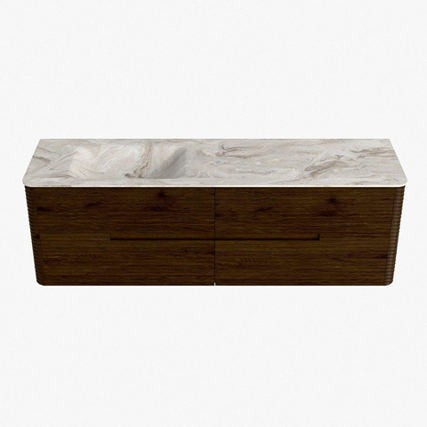 Mondiaz CIRO-DLUX Badkamermeubelset - 160x45x50cm - Solid surface wastafel Frappe - 1 wasbak Links - zonder kraangaten - 4 lades - Walnut