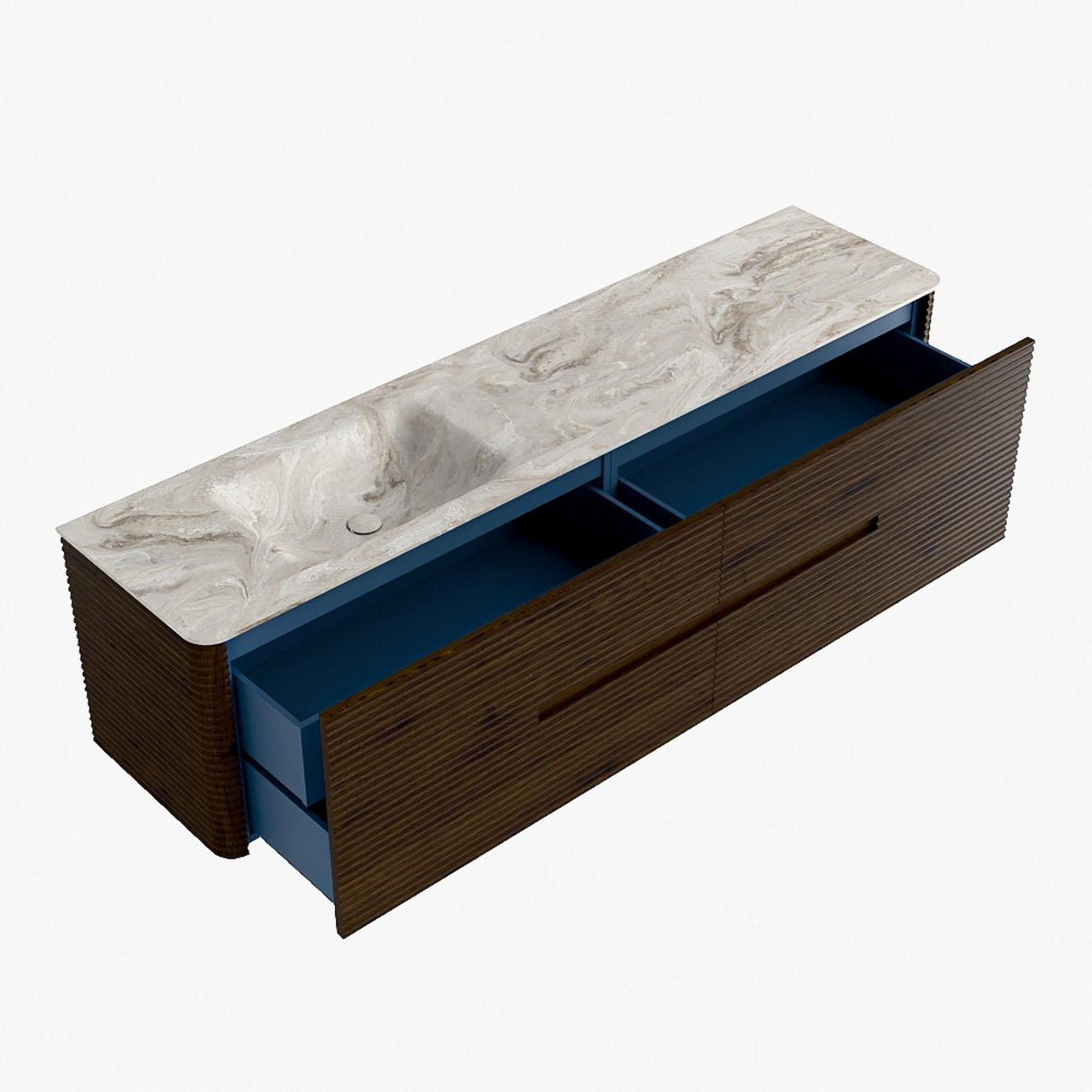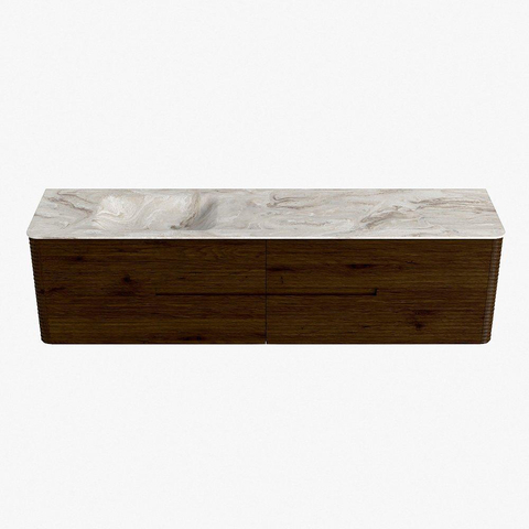 Mondiaz CIRO-DLUX Badkamermeubelset - 190x45x50cm - Solid surface wastafel Frappe - 1 wasbak Links - 1 kraangat - 4 lades - Walnut