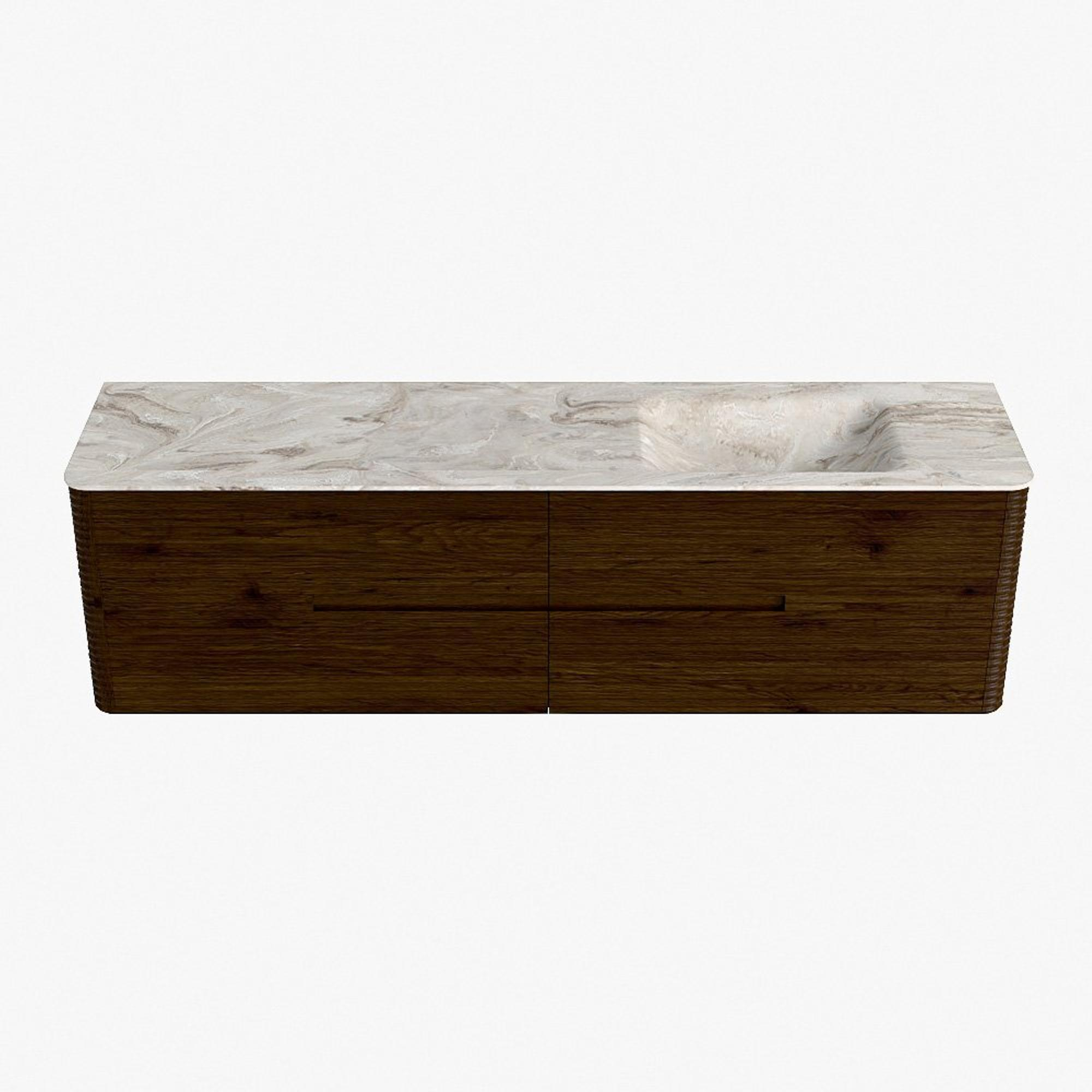 Mondiaz CIRO-DLUX Badkamermeubelset - 180x45x50cm - Solid surface wastafel Frappe - 1 wasbak Rechts - 1 kraangat - 4 lades - Walnut