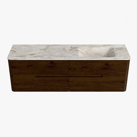 Mondiaz CIRO-DLUX Badkamermeubelset - 160x45x50cm - Solid surface wastafel Frappe - 1 wasbak Rechts - 1 kraangat - 4 lades - Walnut