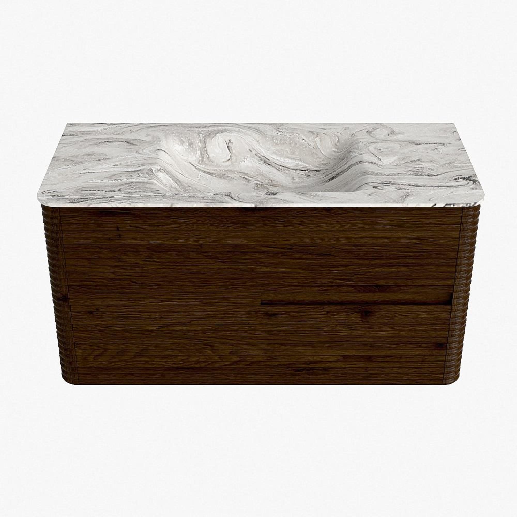 Mondiaz CIRO-DLUX Badkamermeubelset - 100x45x50cm - Solid surface wastafel Glace - 1 wasbak Midden - zonder kraangaten - 2 lades - Walnut