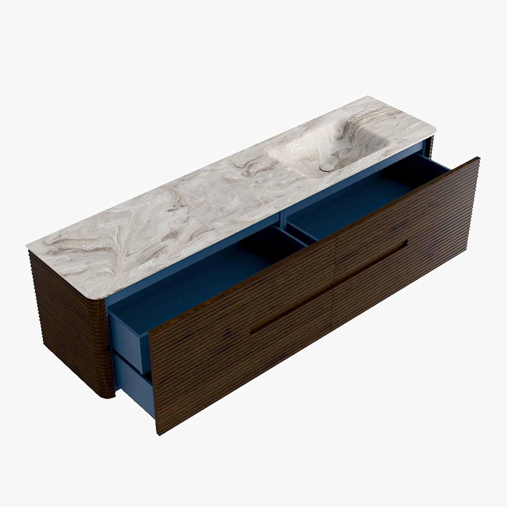 Mondiaz CIRO-DLUX Badkamermeubelset - 190x45x50cm - Solid surface wastafel Frappe - 1 wasbak Rechts - 1 kraangat - 4 lades - Walnut
