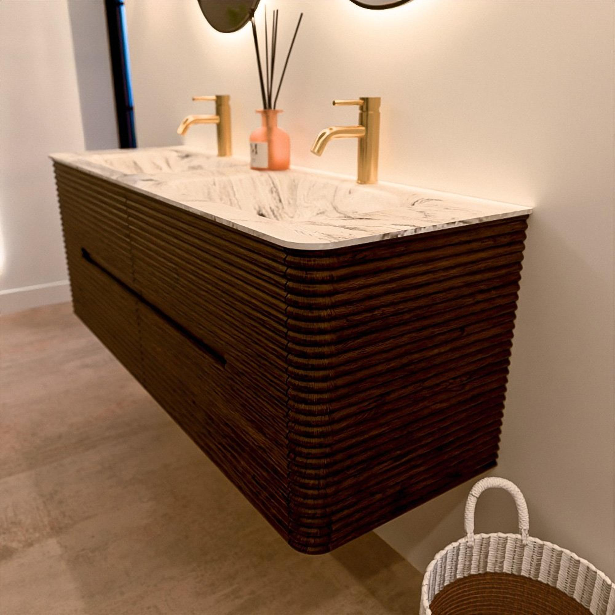 Het CIRO-DLUX badkamermeubel is ontwikkeld voor wie kiest voor modern design, natuurlijke materialen en hoogwaardige functionaliteit. Met maatvoeringen van 70 cm tot 190 cm past de CIRO-serie moeiteloos in zowel compacte badkamers als royale designruimtes. Elk meubel is een uitgebalanceerde combinatie van esthetiek, ambacht en duurzame kwaliteit.