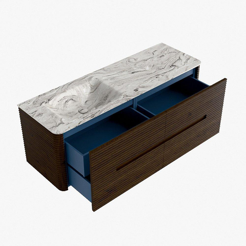 Functioneel gemak is een essentieel onderdeel van de CIRO-serie. Het meubel beschikt over een royale lade met extra binnen lade, ideaal voor het overzichtelijk opbergen van alle dagelijkse badkamerartikelen. Dankzij de geïntegreerde greep en het soft close-mechanisme blijft het front rustig, strak en elegant.