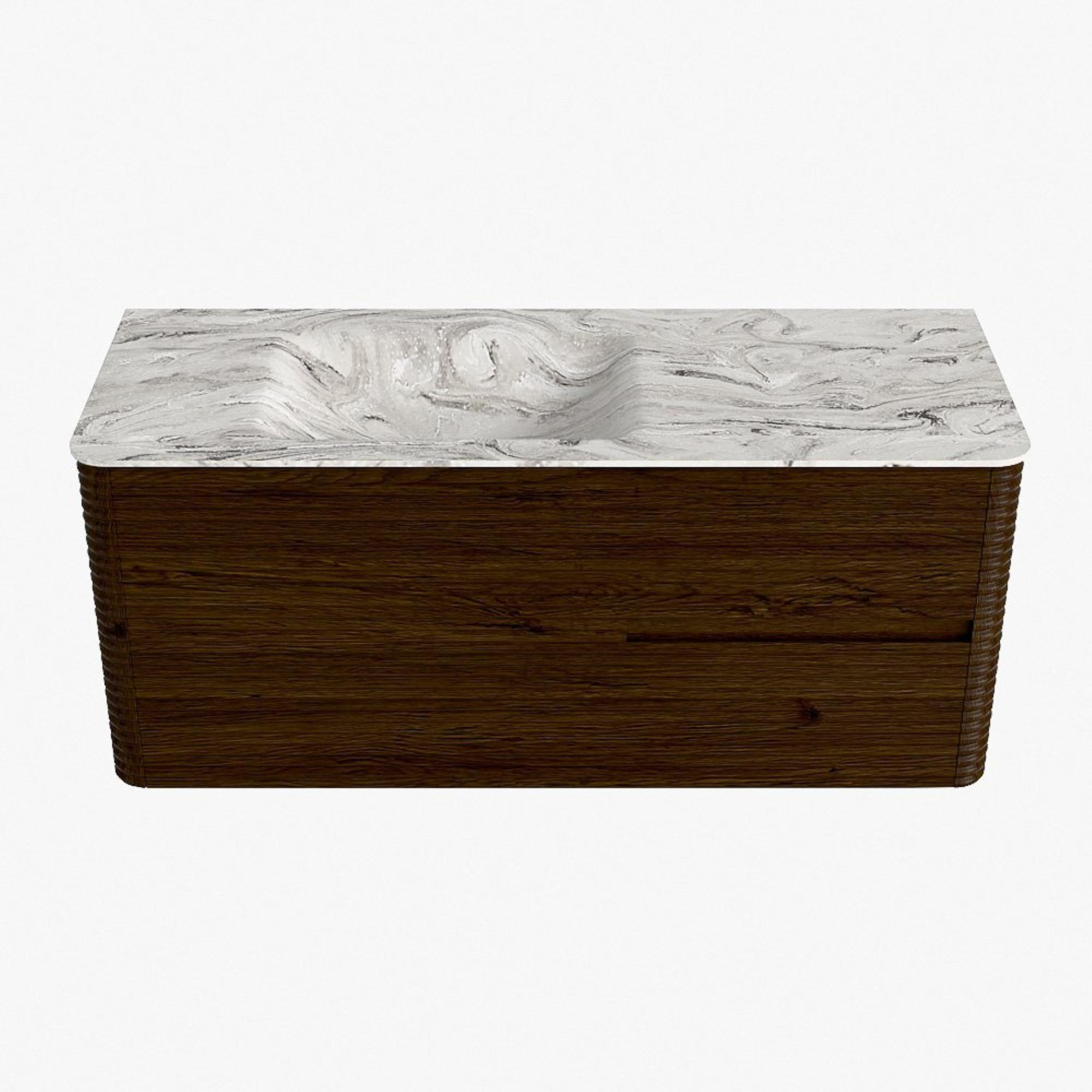 Mondiaz CIRO-DLUX Badkamermeubelset - 120x45x50cm - Solid surface wastafel Glace - 1 wasbak Links - zonder kraangaten - 2 lades - Walnut