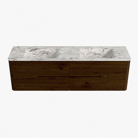 Mondiaz CIRO-DLUX Badkamermeubelset - 170x45x50cm - Solid surface wastafel Glace - 2 wasbak Dubbel - 2 kraangaten - 4 lades - Walnut