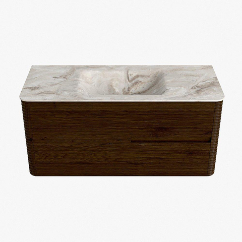 Mondiaz CIRO-DLUX Badkamermeubelset - 110x45x50cm - Solid surface wastafel Frappe - 1 wasbak Midden - 1 kraangat - 2 lades - Walnut