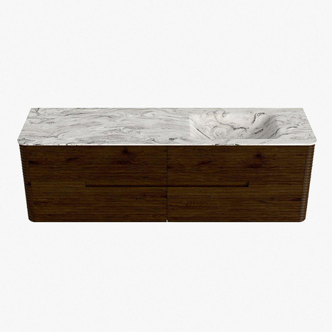 Mondiaz CIRO-DLUX Badkamermeubelset - 160x45x50cm - Solid surface wastafel Glace - 1 wasbak Rechts - zonder kraangaten - 4 lades - Walnut