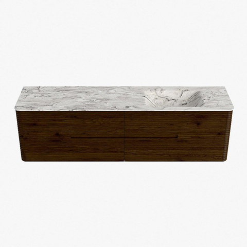 Mondiaz CIRO-DLUX Badkamermeubelset - 180x45x50cm - Solid surface wastafel Glace - 1 wasbak Rechts - 1 kraangat - 4 lades - Walnut