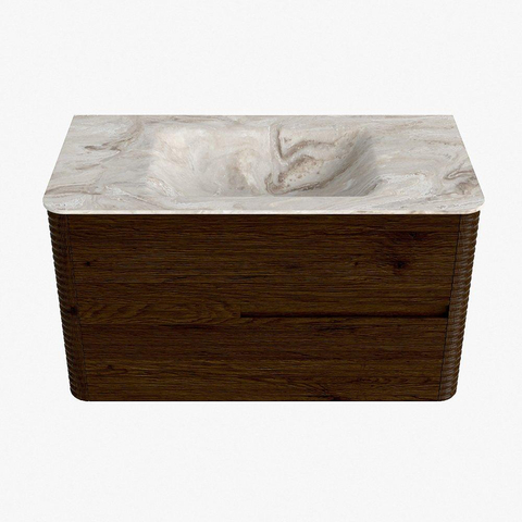Mondiaz CIRO-DLUX Badkamermeubelset - 90x45x50cm - Solid surface wastafel Frappe - 1 wasbak Midden - zonder kraangaten - 2 lades - Walnut