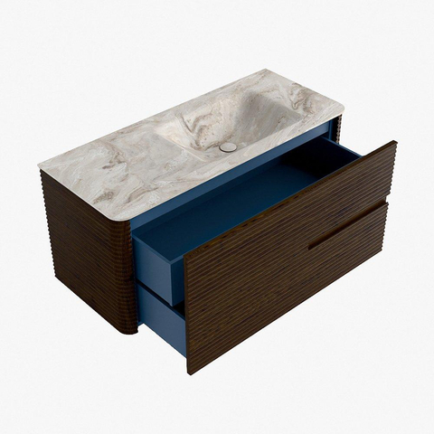 Mondiaz CIRO-DLUX Badkamermeubelset - 110x45x50cm - Solid surface wastafel Frappe - 1 wasbak Rechts - zonder kraangaten - 2 lades - Walnut