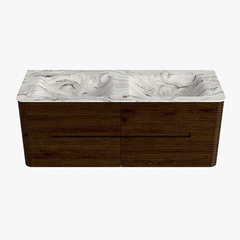 Mondiaz CIRO-DLUX Badkamermeubelset - 130x45x50cm - Solid surface wastafel Glace - 2 wasbak Dubbel - 2 kraangaten - 4 lades - Walnut