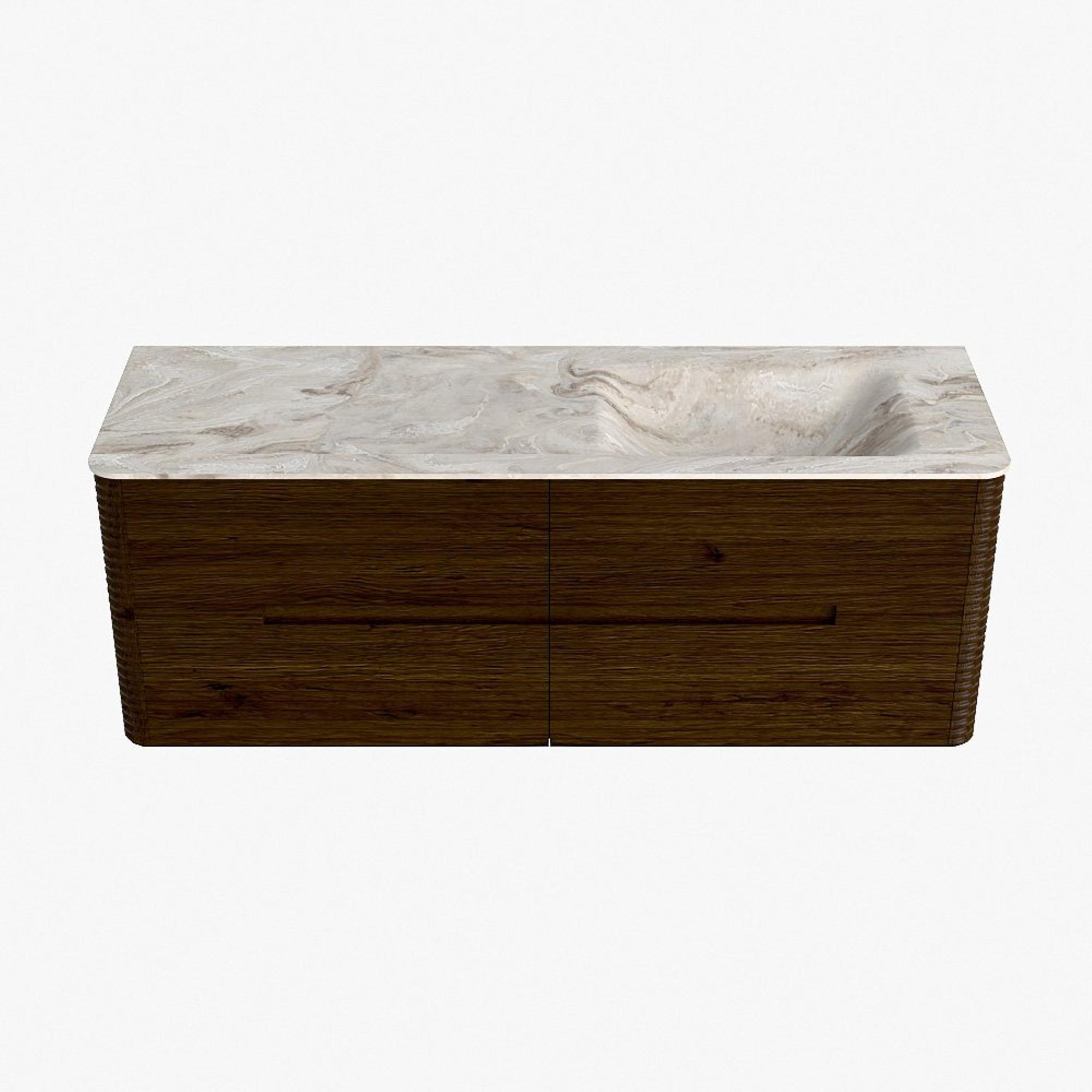 Mondiaz CIRO-DLUX Badkamermeubelset - 140x45x50cm - Solid surface wastafel Frappe - 1 wasbak Rechts - 1 kraangat - 4 lades - Walnut