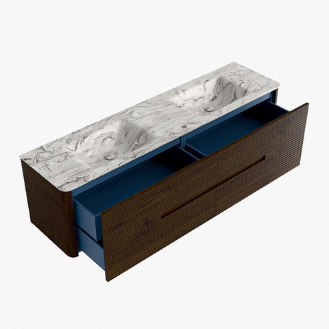 Mondiaz CIRO-DLUX Badkamermeubelset - 180x45x50cm - Solid surface wastafel Glace - 2 wasbak Dubbel - 2 kraangaten - 4 lades - Walnut