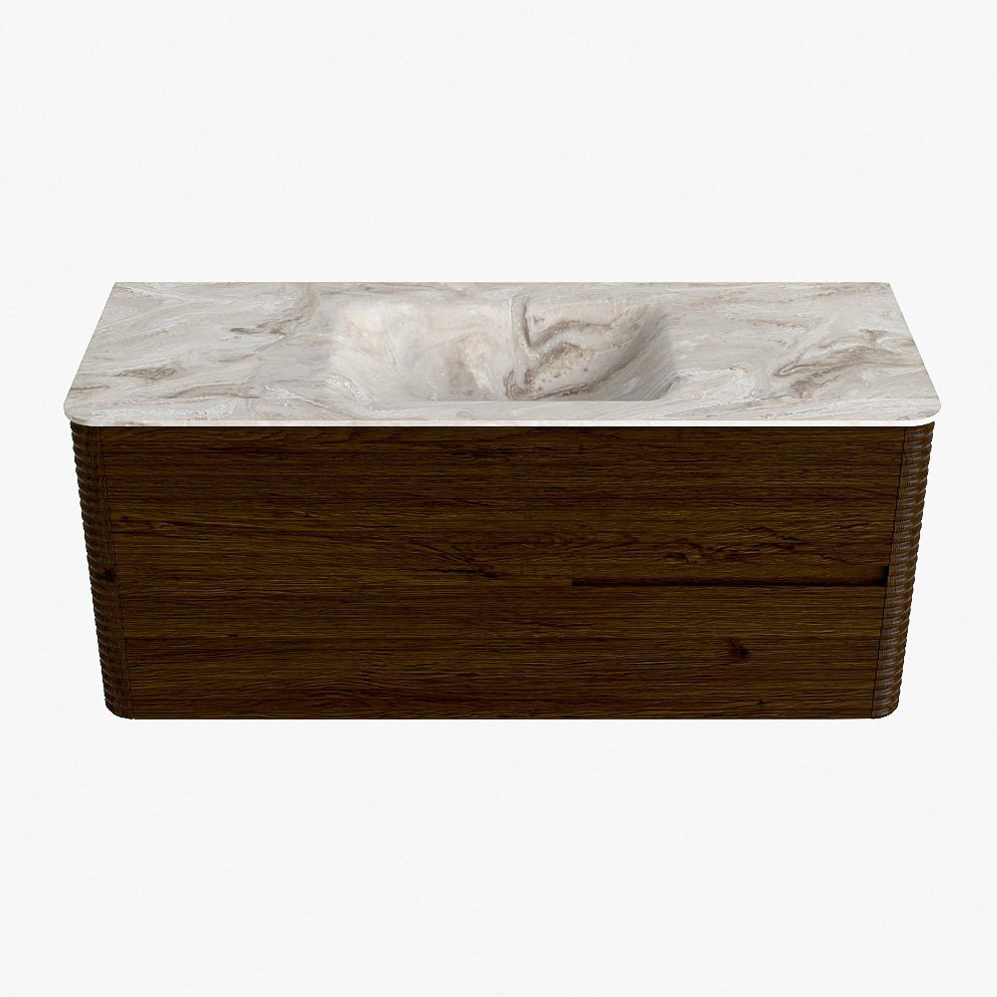 Mondiaz CIRO-DLUX Badkamermeubelset - 120x45x50cm - Solid surface wastafel Frappe - 1 wasbak Midden - zonder kraangaten - 2 lades - Walnut
