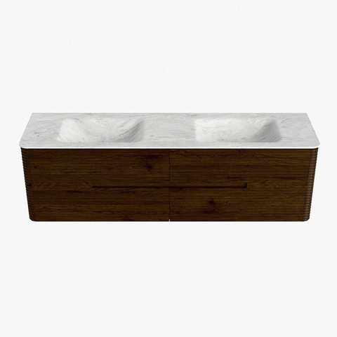 Mondiaz CIRO-DLUX Badkamermeubelset - 170x45x50cm - Solid surface wastafel Opalo - 2 wasbak Dubbel - zonder kraangaten - 4 lades - Walnut