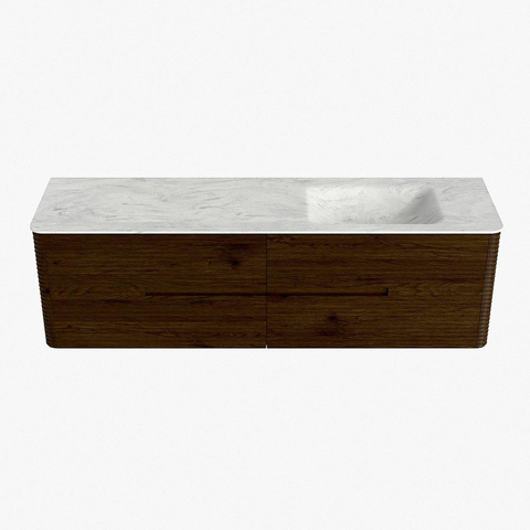 Mondiaz CIRO-DLUX Badkamermeubelset - 170x45x50cm - Solid surface wastafel Opalo - 1 wasbak Rechts - 1 kraangat - 4 lades - Walnut