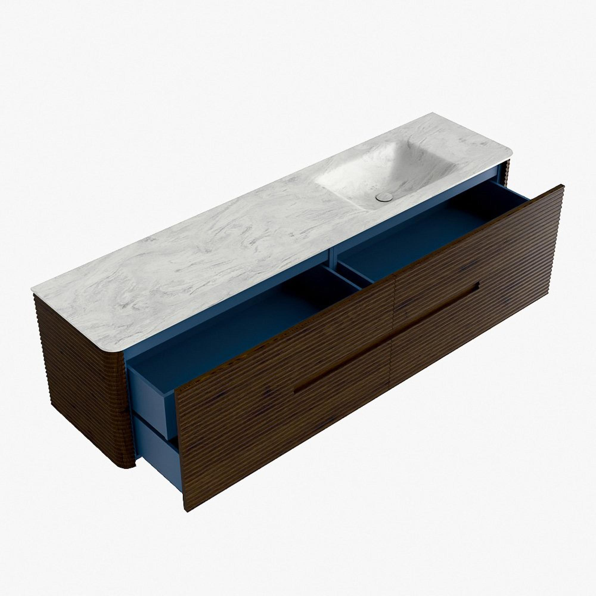 Functioneel gemak is een essentieel onderdeel van de CIRO-serie. Het meubel beschikt over een royale lade met extra binnen lade, ideaal voor het overzichtelijk opbergen van alle dagelijkse badkamerartikelen. Dankzij de geïntegreerde greep en het soft close-mechanisme blijft het front rustig, strak en elegant.