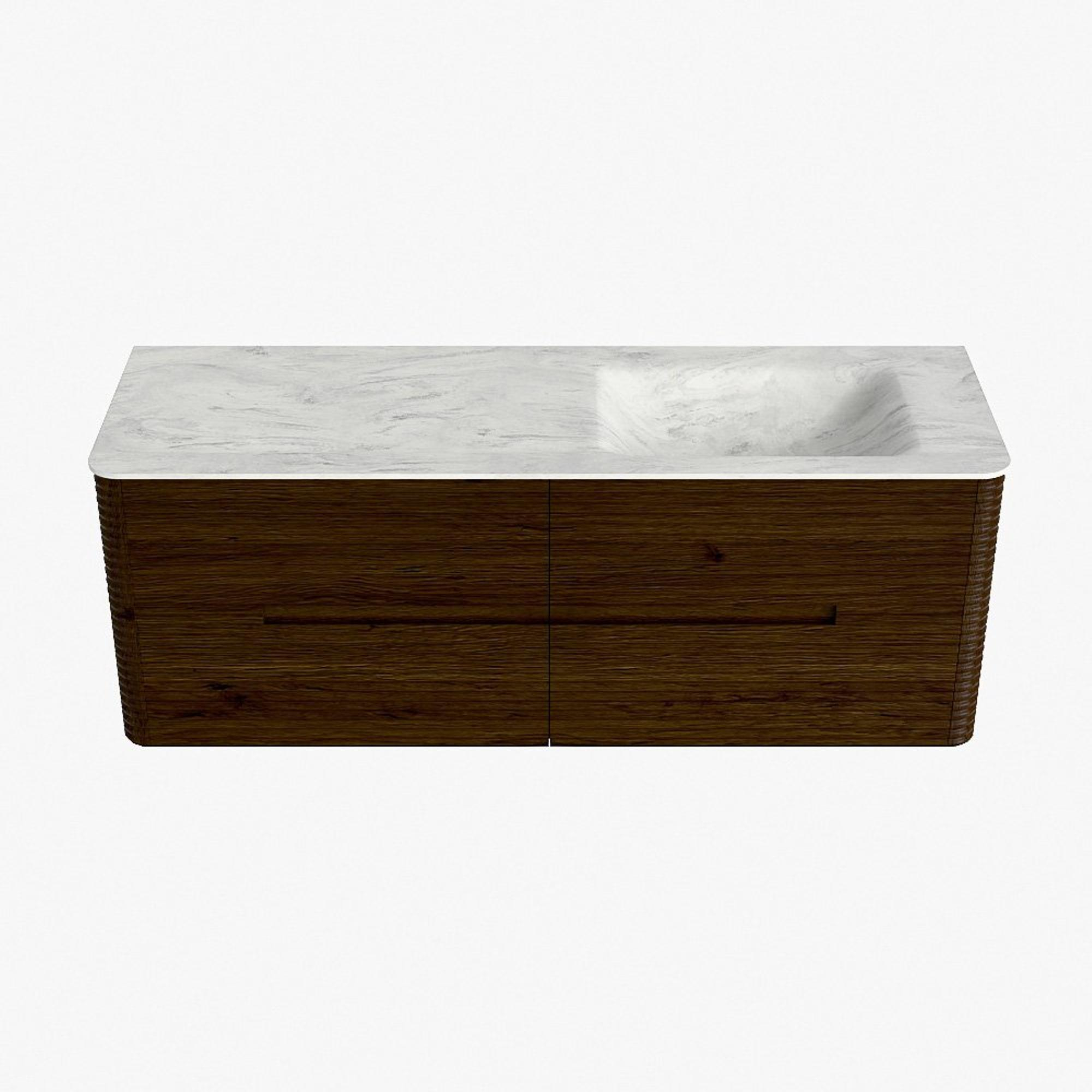 Mondiaz CIRO-DLUX Badkamermeubelset - 140x45x50cm - Solid surface wastafel Opalo - 1 wasbak Rechts - zonder kraangaten - 4 lades - Walnut