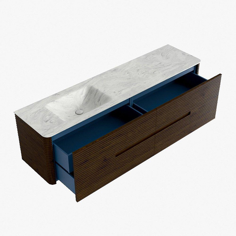Functioneel gemak is een essentieel onderdeel van de CIRO-serie. Het meubel beschikt over een royale lade met extra binnen lade, ideaal voor het overzichtelijk opbergen van alle dagelijkse badkamerartikelen. Dankzij de geïntegreerde greep en het soft close-mechanisme blijft het front rustig, strak en elegant.