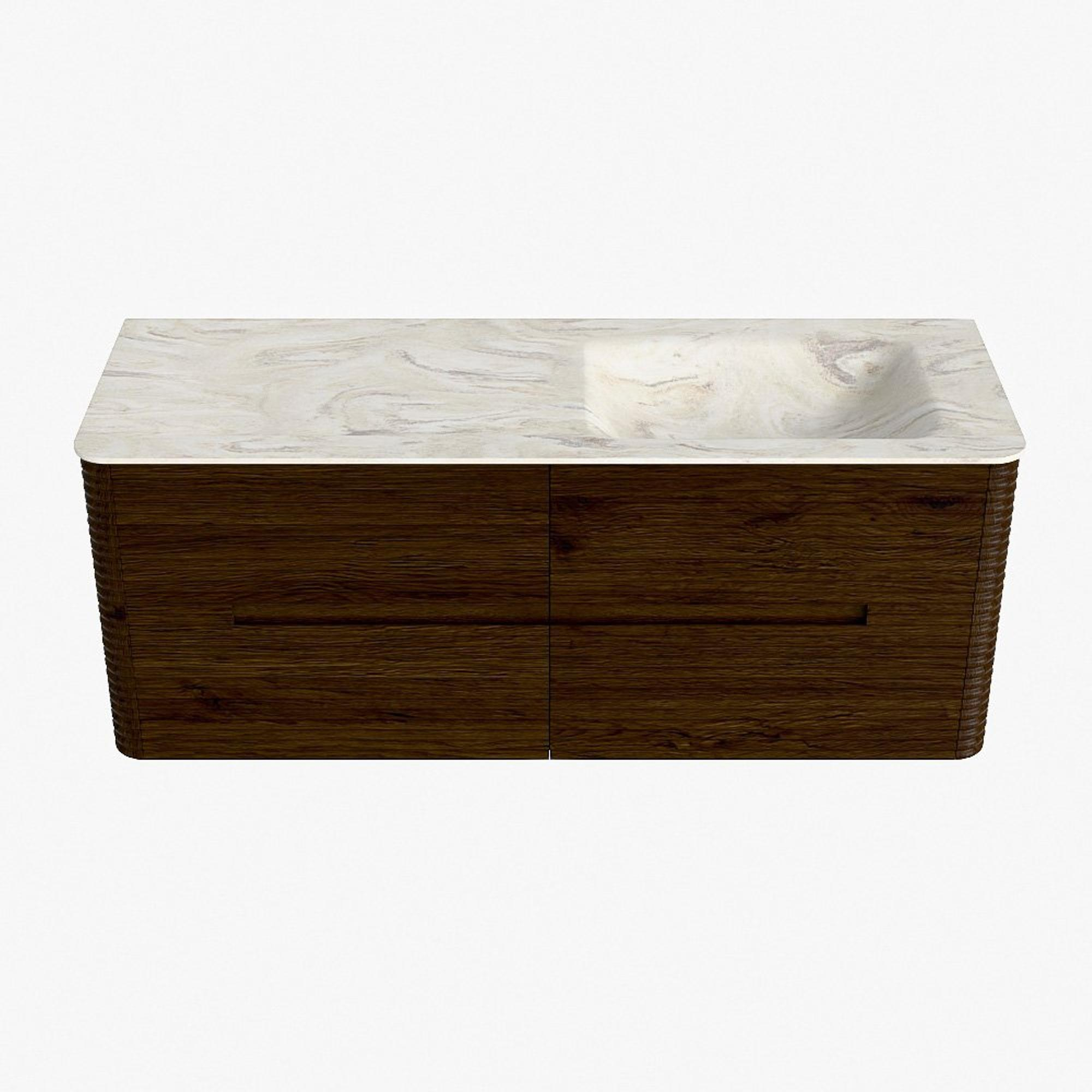 Mondiaz CIRO-DLUX Badkamermeubelset - 130x45x50cm - Solid surface wastafel Ostra - 1 wasbak Rechts - 1 kraangat - 4 lades - Walnut
