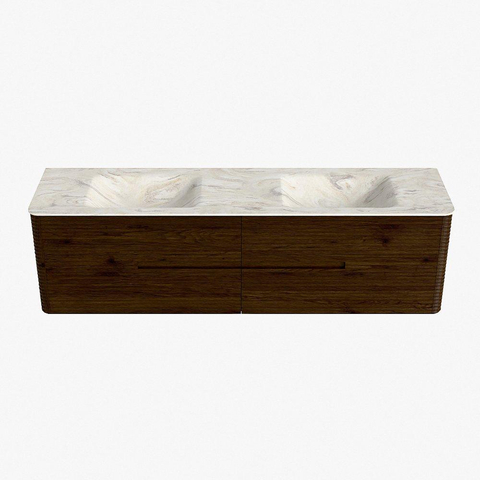 Mondiaz CIRO-DLUX Badkamermeubelset - 180x45x50cm - Solid surface wastafel Ostra - 2 wasbak Dubbel - 2 kraangaten - 4 lades - Walnut