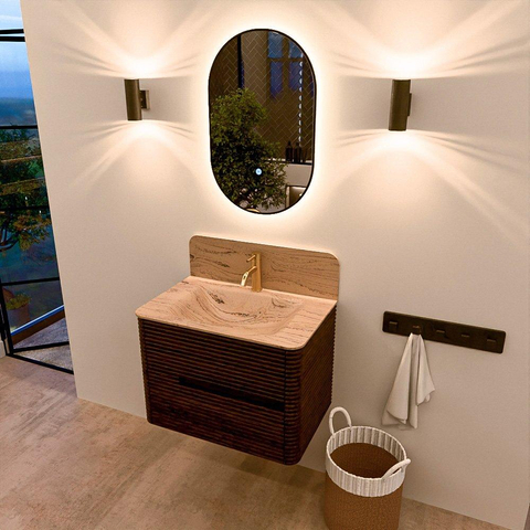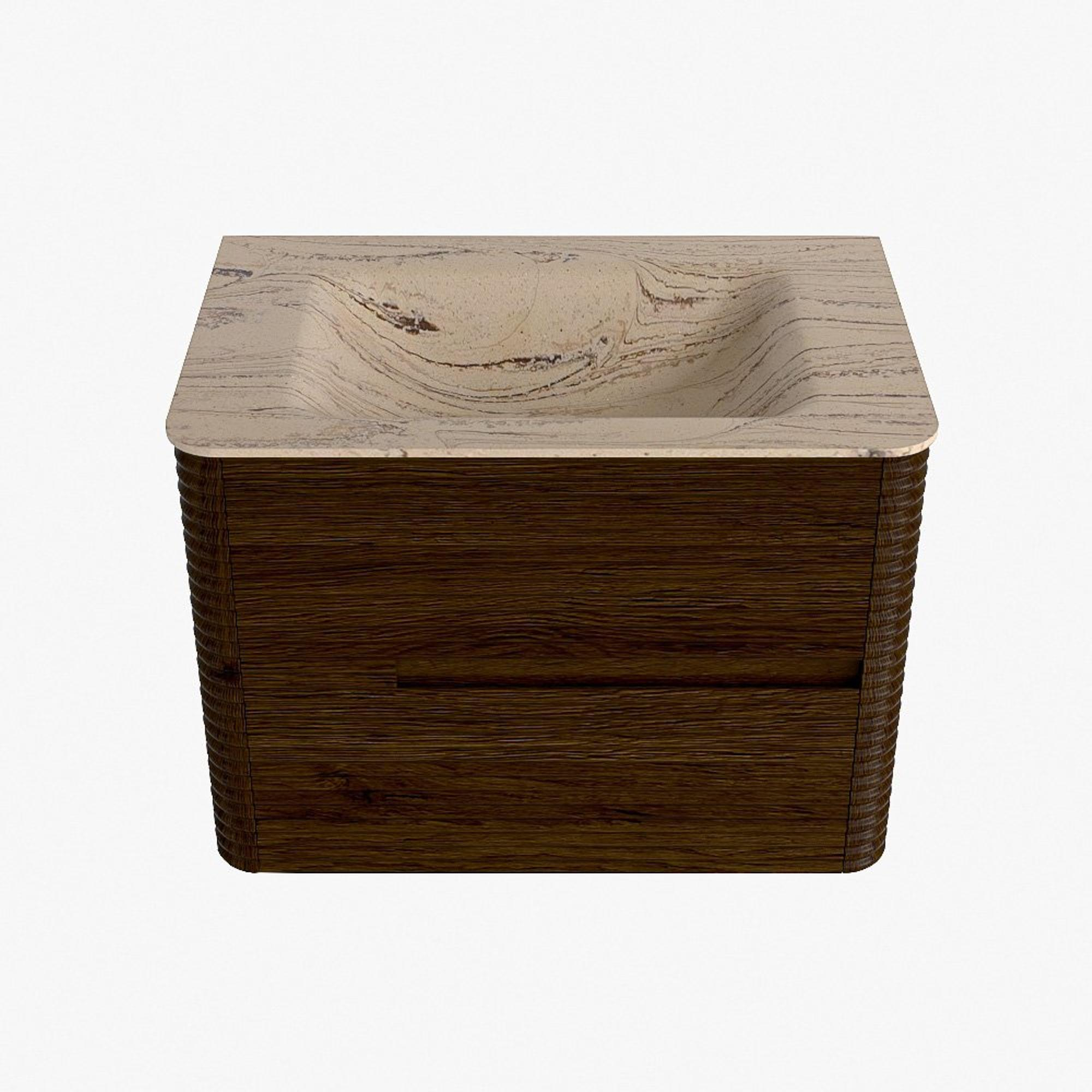Mondiaz CIRO-DLUX Badkamermeubelset - 70x45x50cm - Solid surface wastafel Arena - 1 wasbak Midden - 1 kraangat - 2 lades - Walnut