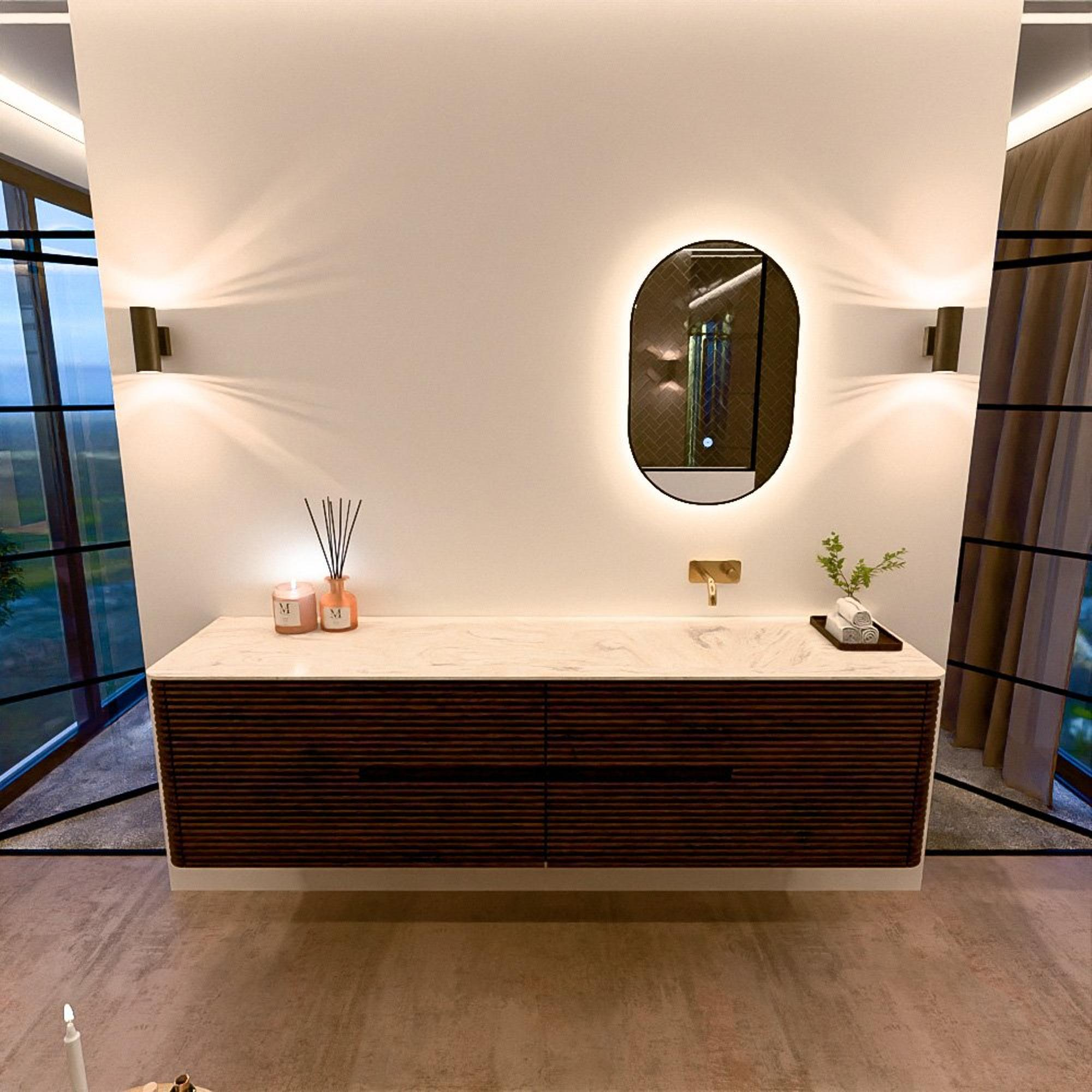 Het CIRO-DLUX badkamermeubel is ontwikkeld voor wie kiest voor modern design, natuurlijke materialen en hoogwaardige functionaliteit. Met maatvoeringen van 70 cm tot 190 cm past de CIRO-serie moeiteloos in zowel compacte badkamers als royale designruimtes. Elk meubel is een uitgebalanceerde combinatie van esthetiek, ambacht en duurzame kwaliteit.