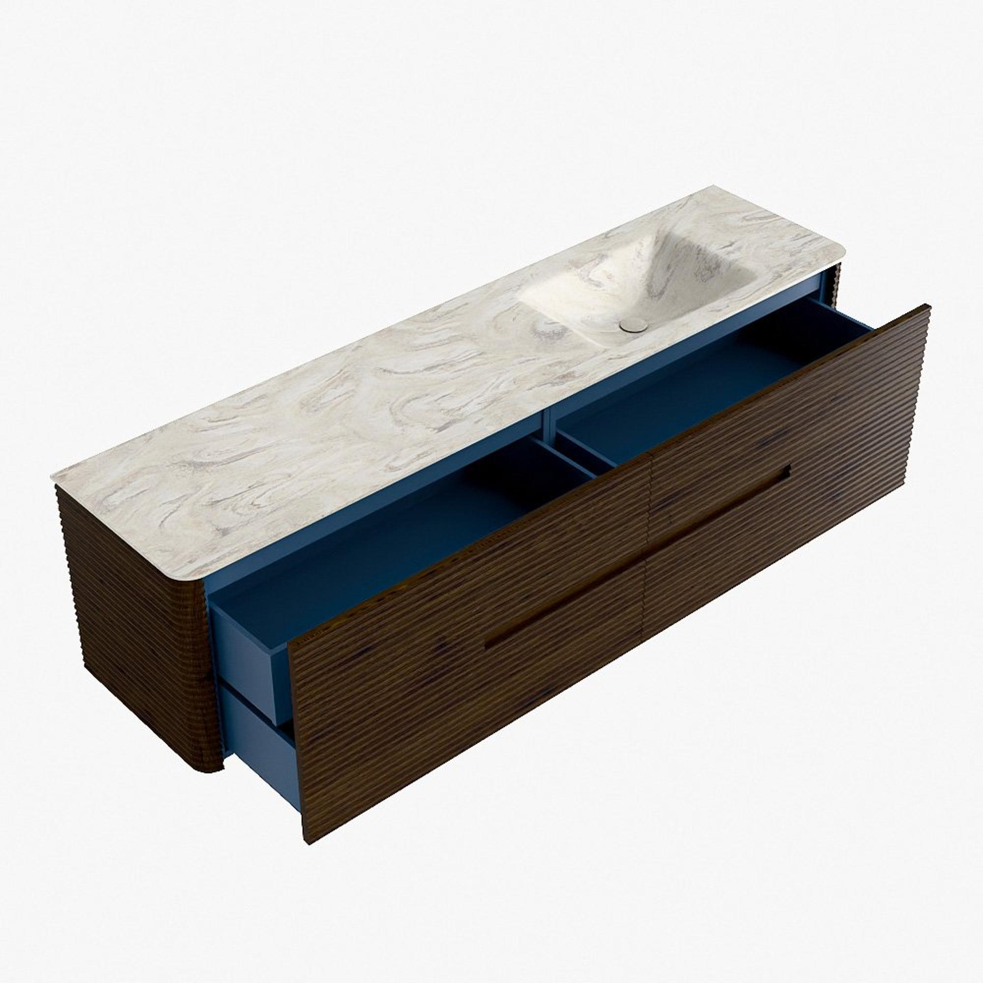 Mondiaz CIRO-DLUX Badkamermeubelset - 190x45x50cm - Solid surface wastafel Ostra - 1 wasbak Rechts - zonder kraangaten - 4 lades - Walnut