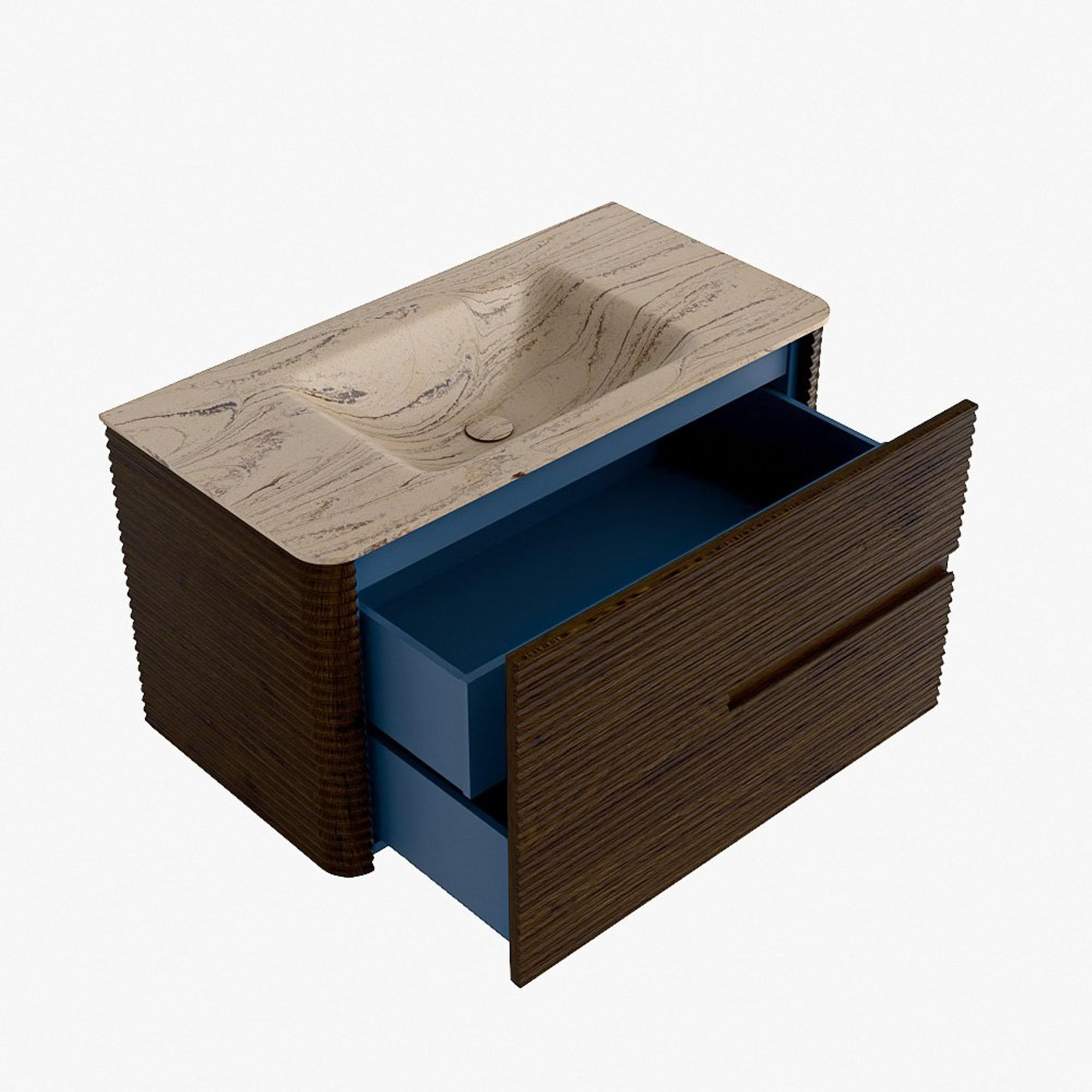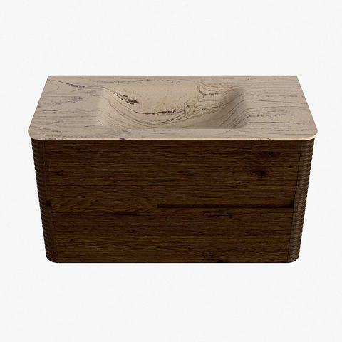 Mondiaz CIRO-DLUX Badkamermeubelset - 90x45x50cm - Solid surface wastafel Arena - 1 wasbak Midden - zonder kraangaten - 2 lades - Walnut