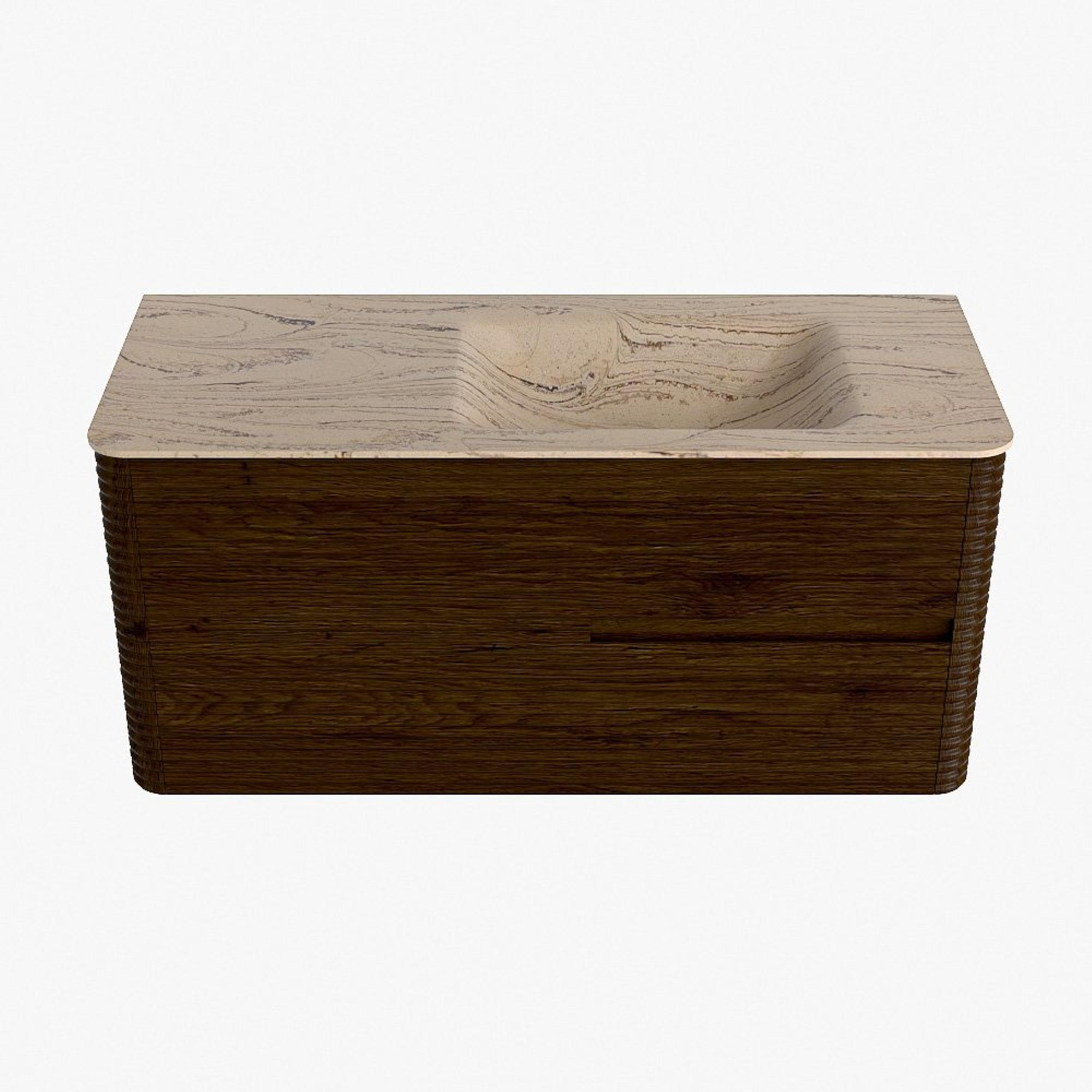 Mondiaz CIRO-DLUX Badkamermeubelset - 110x45x50cm - Solid surface wastafel Arena - 1 wasbak Rechts - 1 kraangat - 2 lades - Walnut