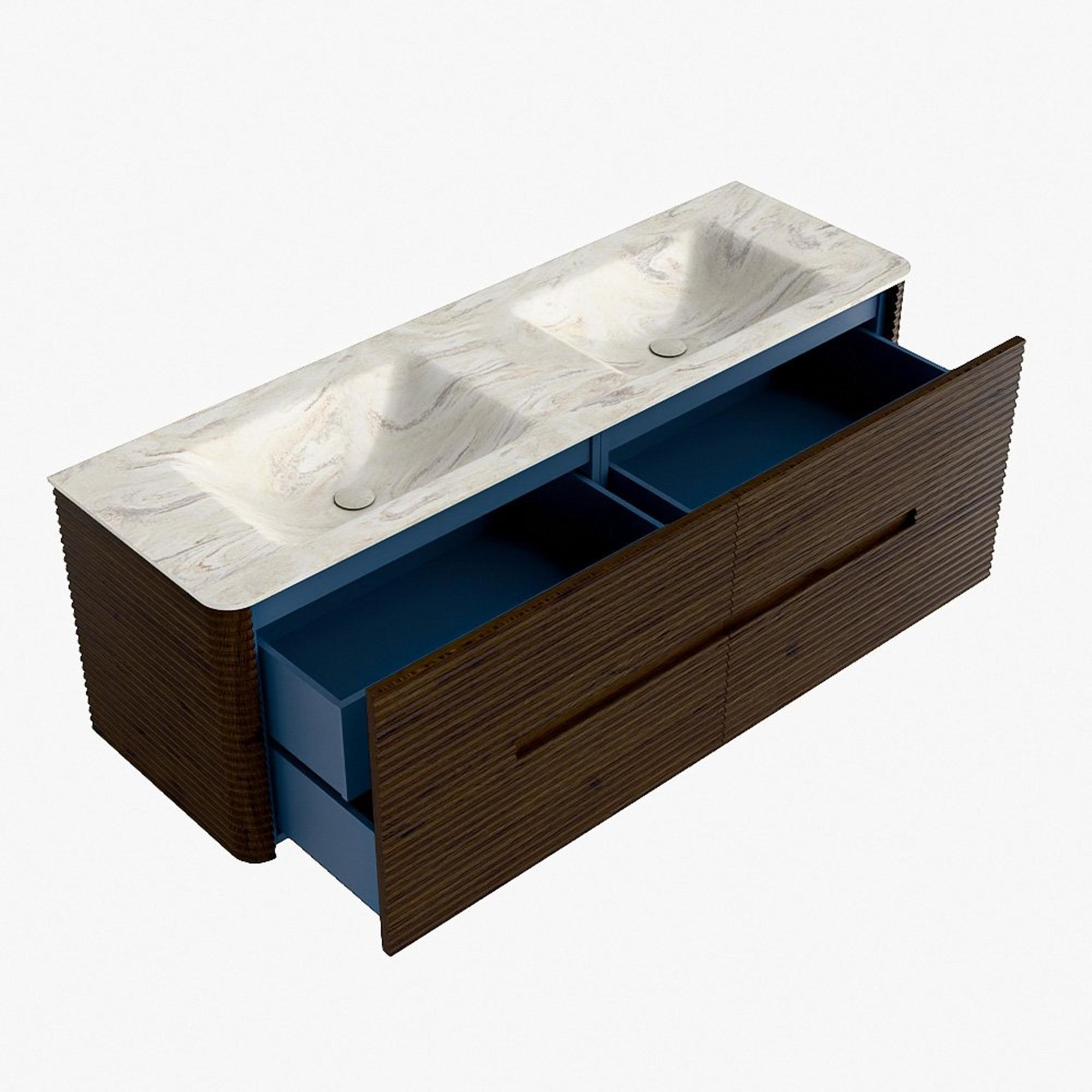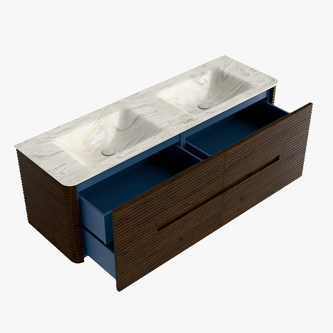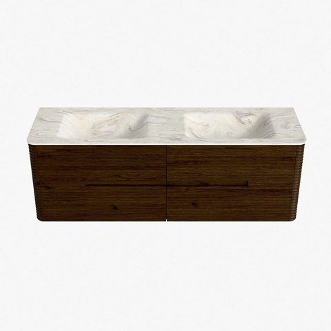Mondiaz CIRO-DLUX Badkamermeubelset - 150x45x50cm - Solid surface wastafel Ostra - 2 wasbak Dubbel - 2 kraangaten - 4 lades - Walnut