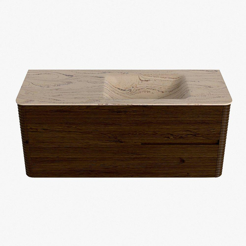 Mondiaz CIRO-DLUX Badkamermeubelset - 120x45x50cm - Solid surface wastafel Arena - 1 wasbak Rechts - zonder kraangaten - 2 lades - Walnut