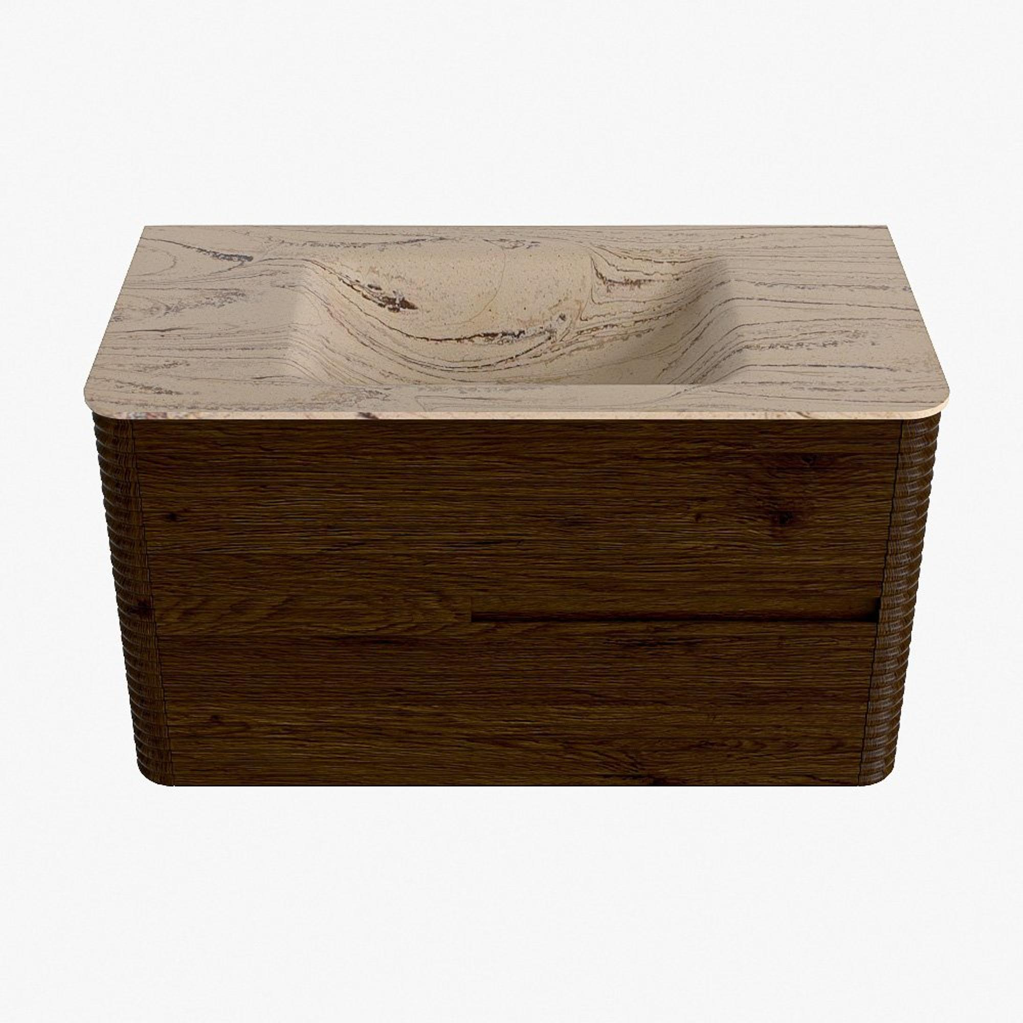 Mondiaz CIRO-DLUX Badkamermeubelset - 90x45x50cm - Solid surface wastafel Arena - 1 wasbak Midden - 1 kraangat - 2 lades - Walnut