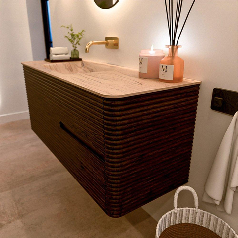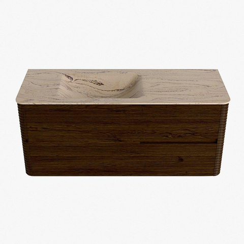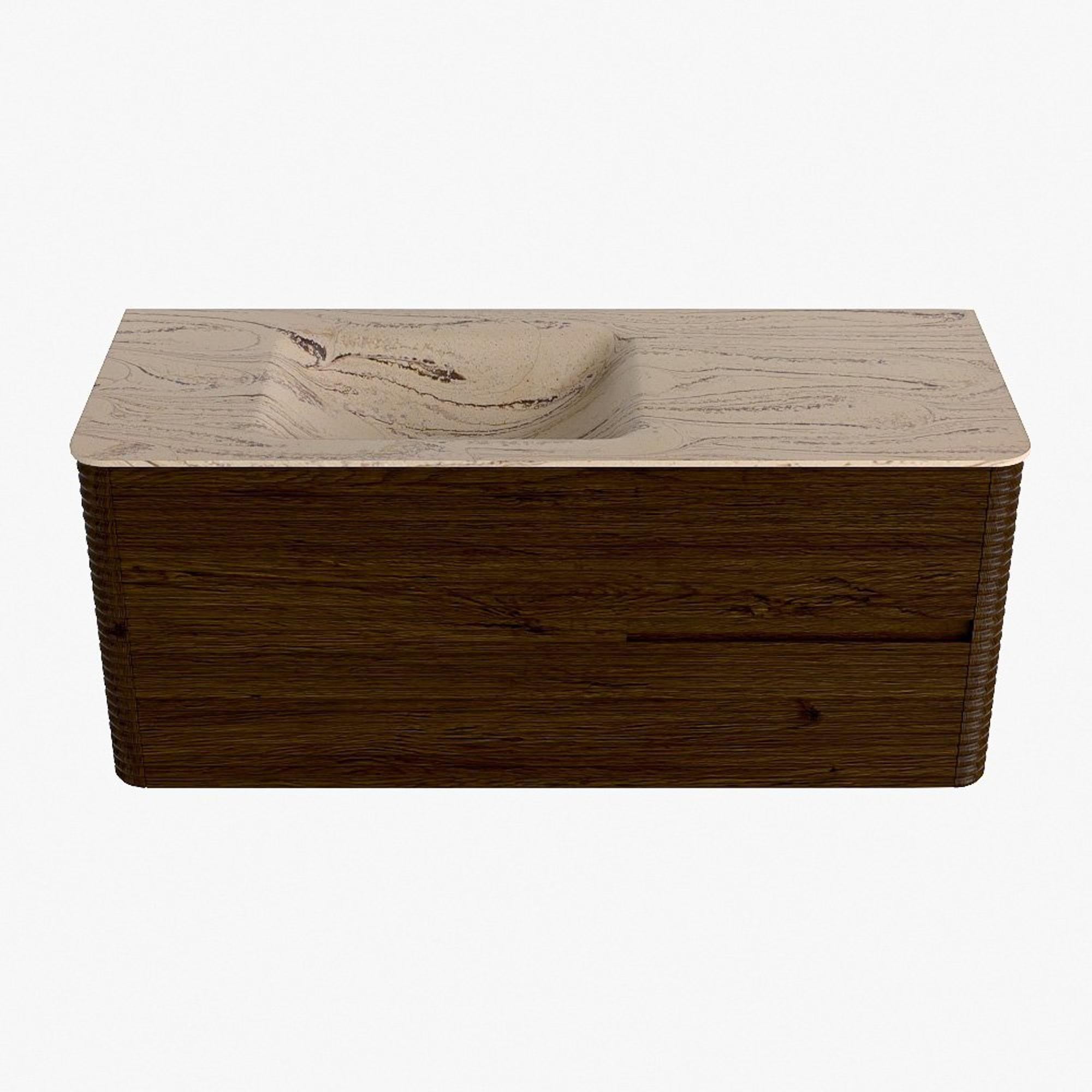 Mondiaz CIRO-DLUX Badkamermeubelset - 120x45x50cm - Solid surface wastafel Arena - 1 wasbak Links - zonder kraangaten - 2 lades - Walnut