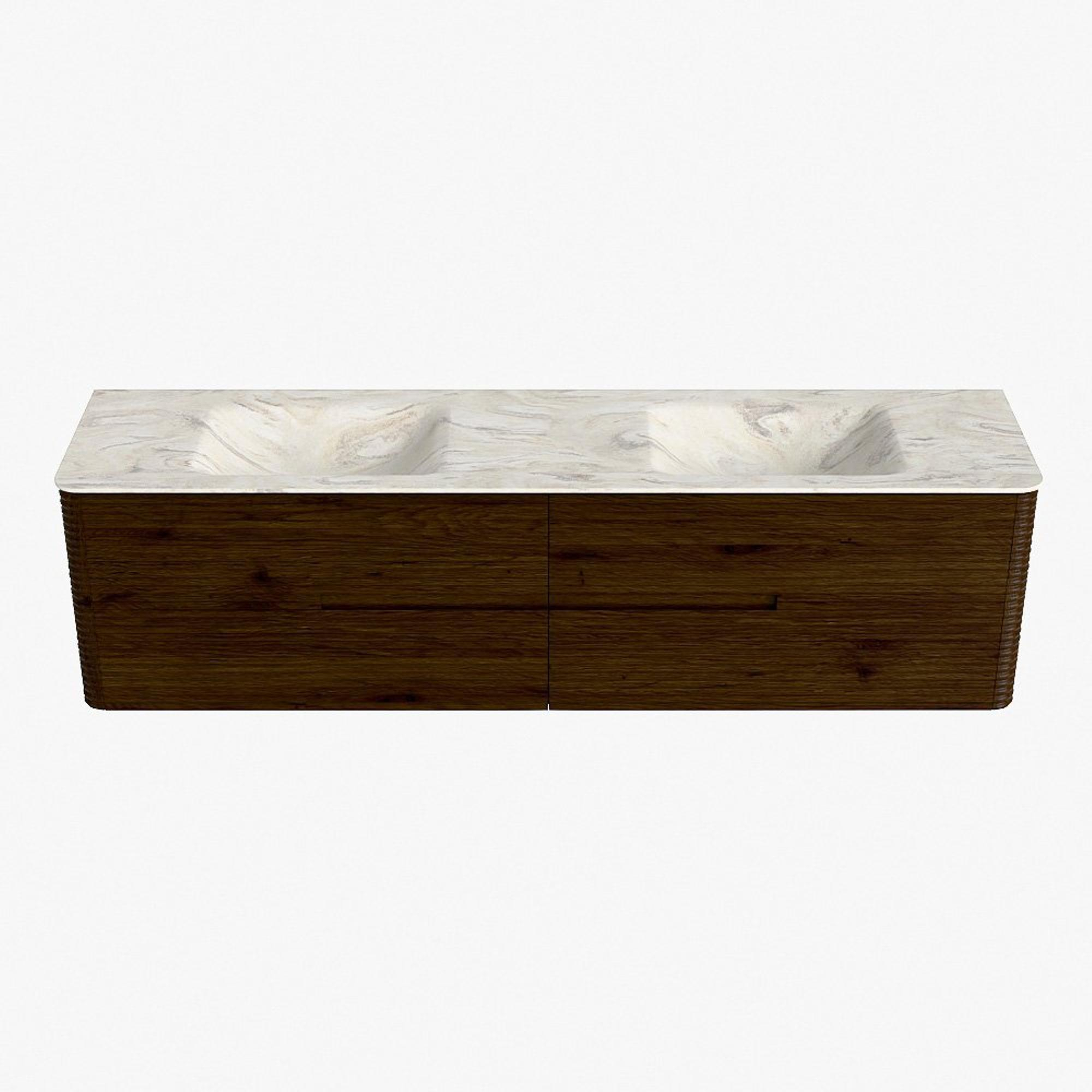 Mondiaz CIRO-DLUX Badkamermeubelset - 190x45x50cm - Solid surface wastafel Ostra - 2 wasbak Dubbel - zonder kraangaten - 4 lades - Walnut