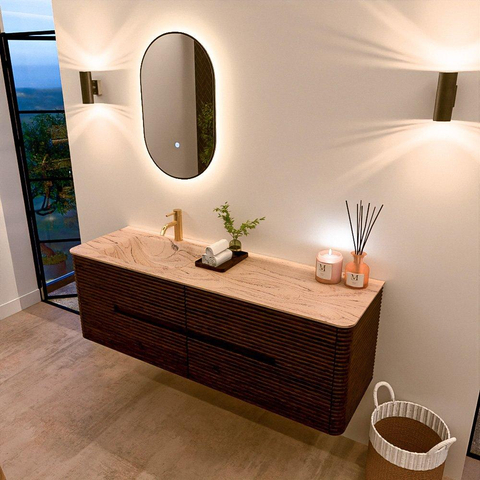 De wastafels van de CIRO-lijn worden vervaardigd uit hoogwaardig Solid Surface, een materiaal dat bekendstaat om zijn strakke uitstraling, hygiënische eigenschappen en uitstekende duurzaamheid. De wastafels zijn beschikbaar in 11 marmer- en travertin tinten, waarmee je het luxueuze karakter van natuursteen combineert met de voordelen van Solid Surface. De organische vorm van de kom versterkt het serene, sculpturale karakter van het ontwerp.