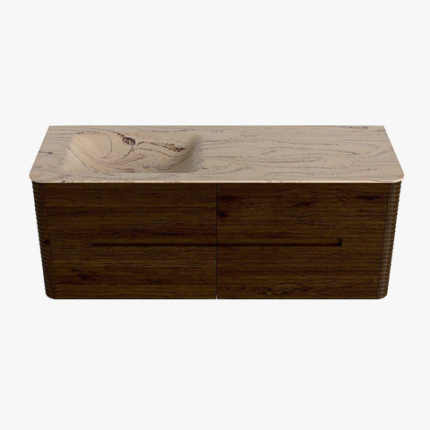 Mondiaz CIRO-DLUX Badkamermeubelset - 130x45x50cm - Solid surface wastafel Arena - 1 wasbak Links - 1 kraangat - 4 lades - Walnut