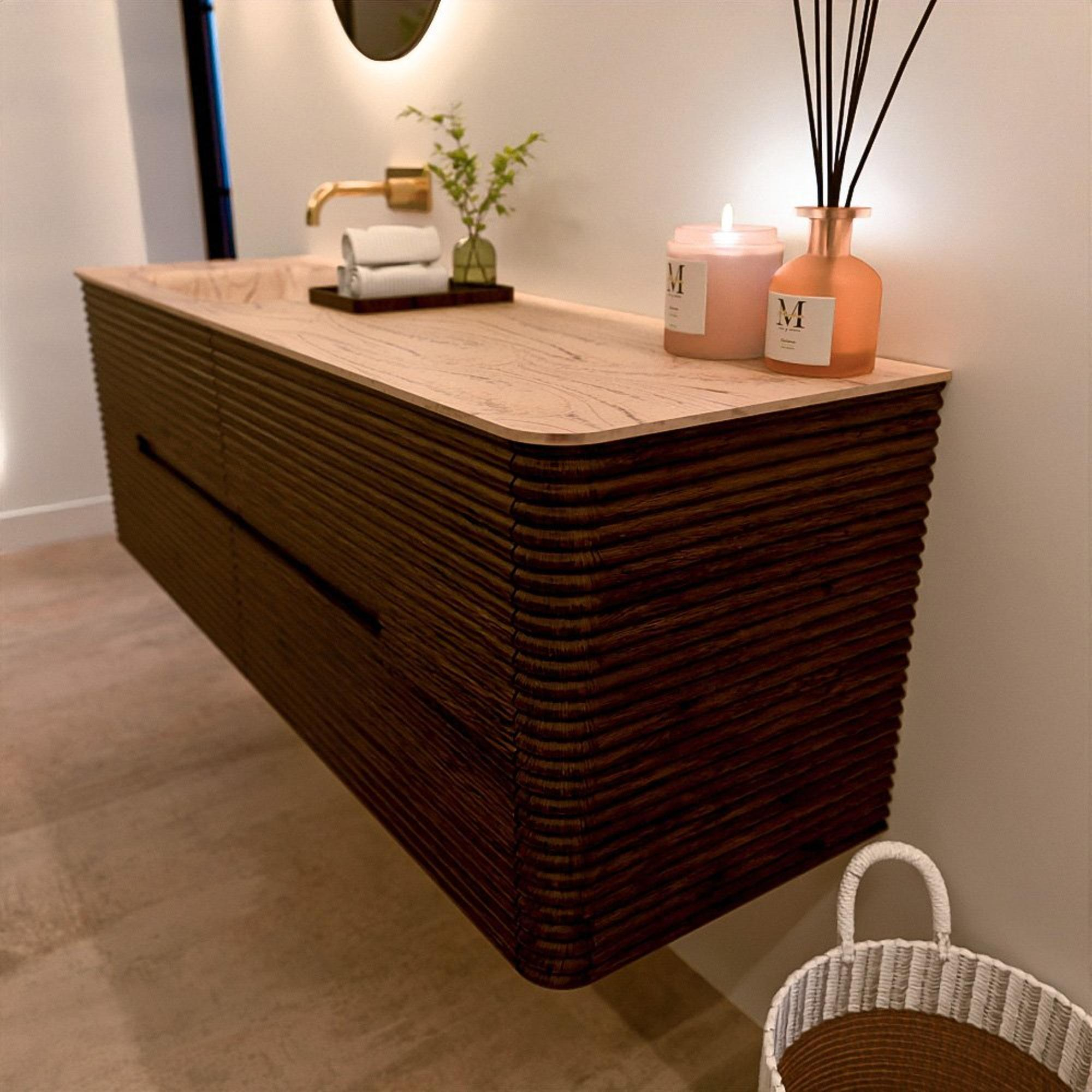 Het CIRO-DLUX badkamermeubel is ontwikkeld voor wie kiest voor modern design, natuurlijke materialen en hoogwaardige functionaliteit. Met maatvoeringen van 70 cm tot 190 cm past de CIRO-serie moeiteloos in zowel compacte badkamers als royale designruimtes. Elk meubel is een uitgebalanceerde combinatie van esthetiek, ambacht en duurzame kwaliteit.