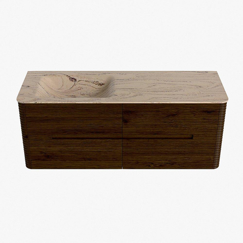 Mondiaz CIRO-DLUX Badkamermeubelset - 130x45x50cm - Solid surface wastafel Arena - 1 wasbak Links - zonder kraangaten - 4 lades - Walnut