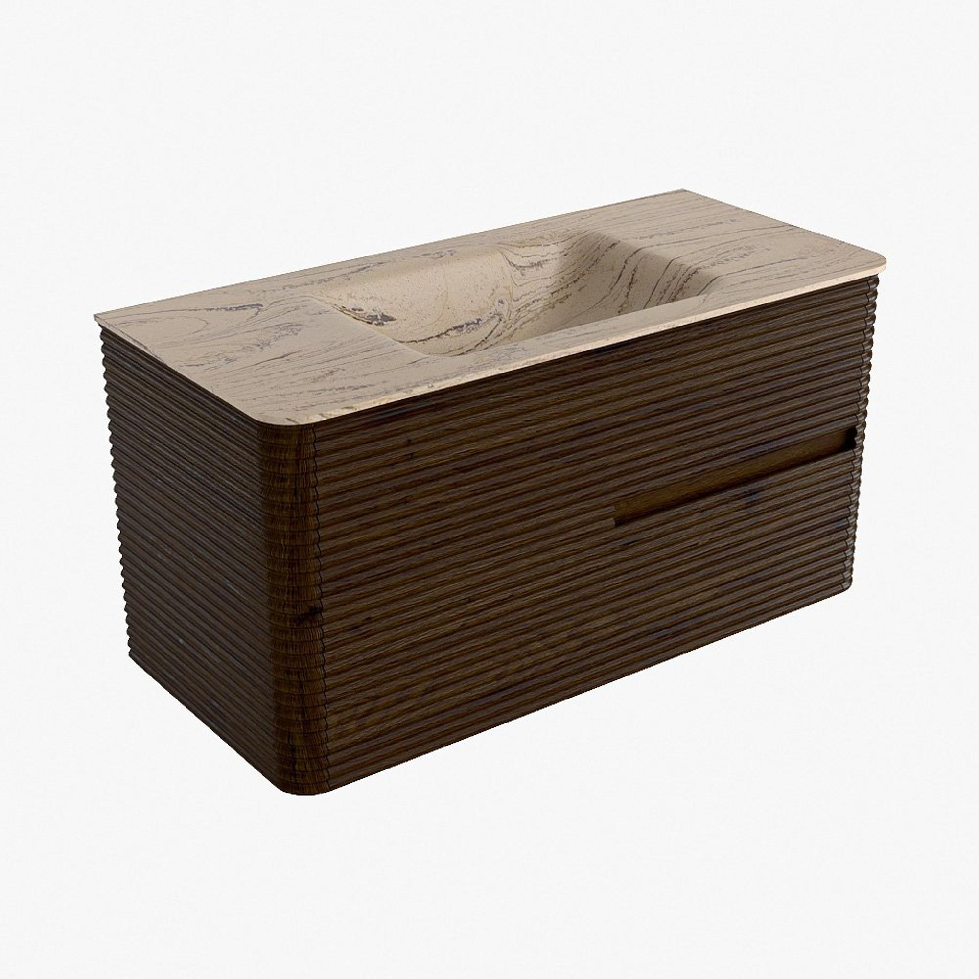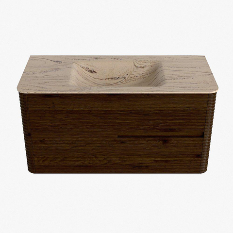 Mondiaz CIRO-DLUX Badkamermeubelset - 100x45x50cm - Solid surface wastafel Arena - 1 wasbak Midden - 1 kraangat - 2 lades - Walnut