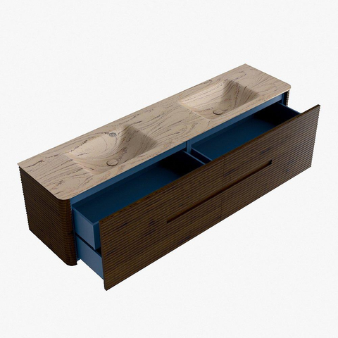 Mondiaz CIRO-DLUX Badkamermeubelset - 190x45x50cm - Solid surface wastafel Arena - 2 wasbak Dubbel - 2 kraangaten - 4 lades - Walnut
